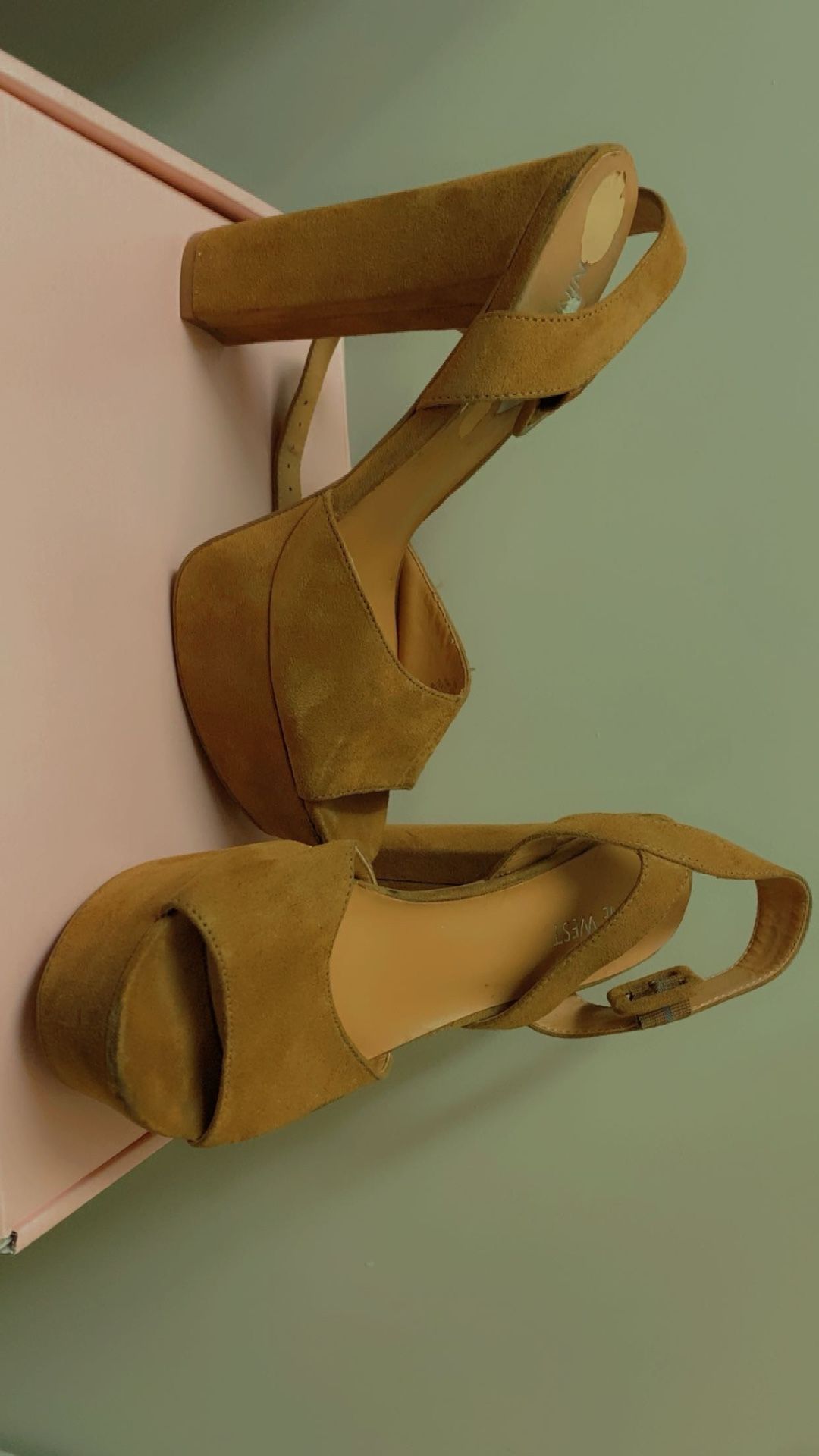 These are tan velvet platform heels are 7.5 in woman’s …wore them only 1 time.