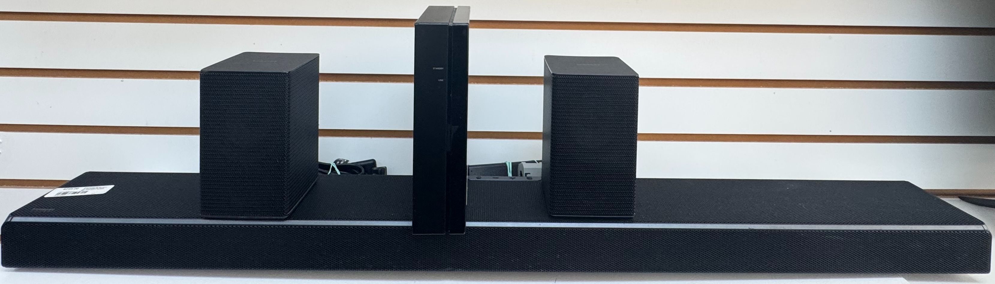 Samsung Home Theater Complete Set – Immersive Surround Sound Experience Upgrade your home entertainment with this Samsung Home Theater Complete Set, designed to deliver cinematic audio from the comfort of your living room. This all-in-one system includes a central receiver, multiple surround sound speakers, a powerful subwoofer, and all essential cables for easy installation. Complete 5.1 or 7.1 Channel Setup – Surround yourself with clear, dynamic audio from every angle. Powerful Subwoofer – Deep bass that enhances action scenes and music playback. Crystal Clear Dialogue – Center channel speaker ensures voices are sharp and clear. Wireless & Wired Options – Some components offer Bluetooth or Wi-Fi connectivity for hassle-free setup (if applicable). Universal Compatibility – Works seamlessly with TVs, gaming consoles, and streaming devices. Sleek, Compact Design – Complements any home décor without taking up too much space.
