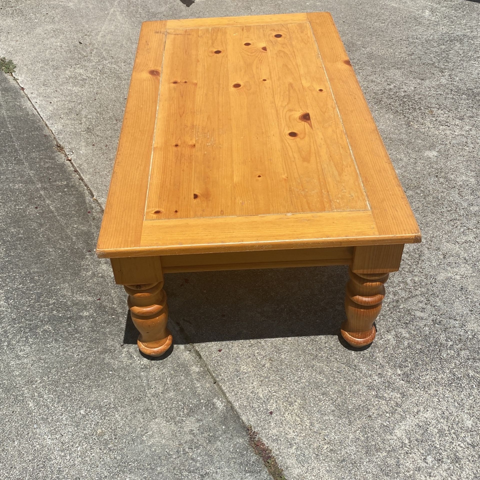 Pretty sure this is from Broyhill’s Fontana collection. Very sturdy. Does have nicks and dings. Lots of life left!