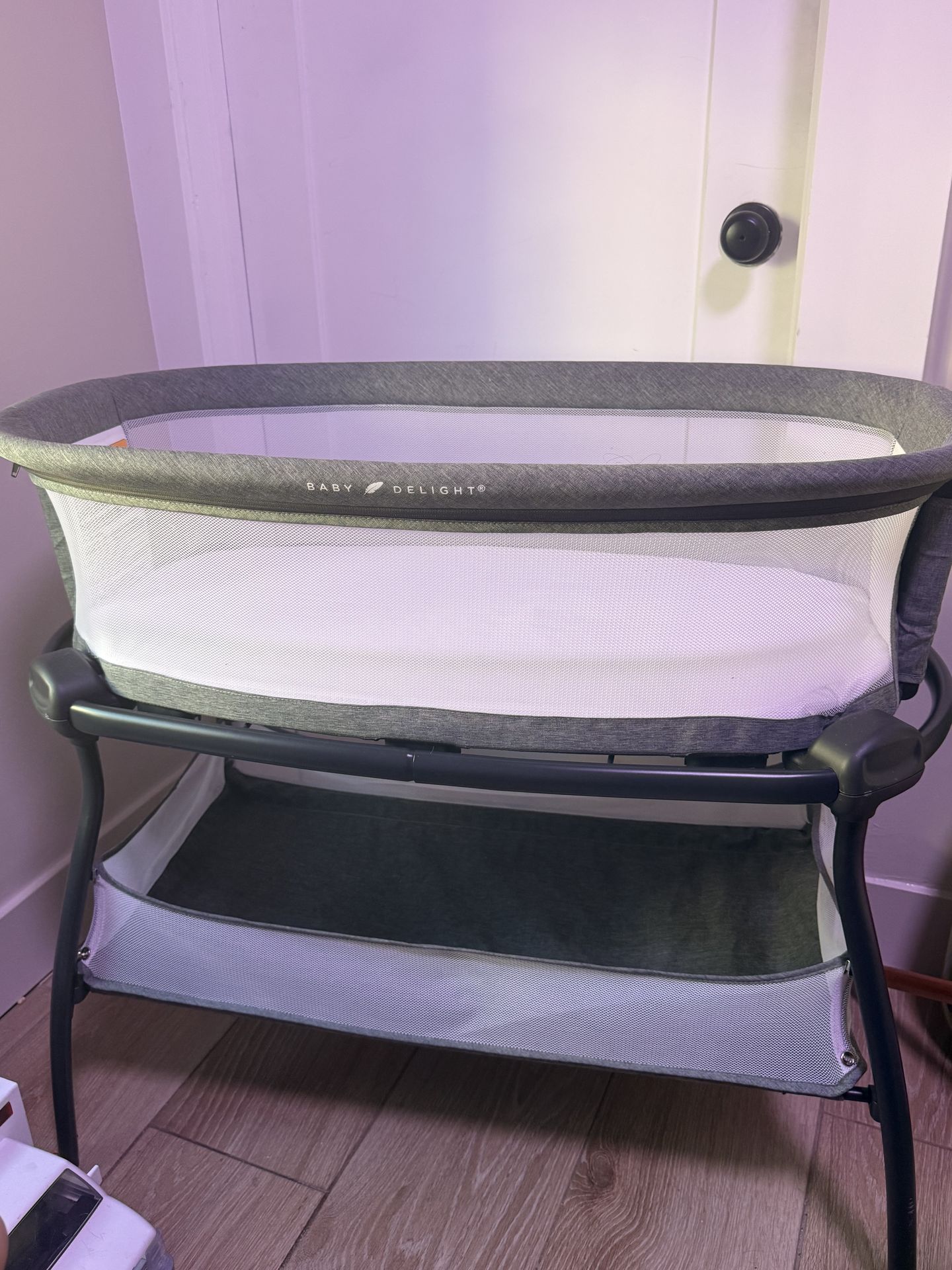 $100 or OBO - Baby bassinet with bottom storage. The bassinet is detachable and it's easy. Just gotta press buttons pictured. Measurements: 35 × 19 Nothing wrong with it, baby outgrew it.