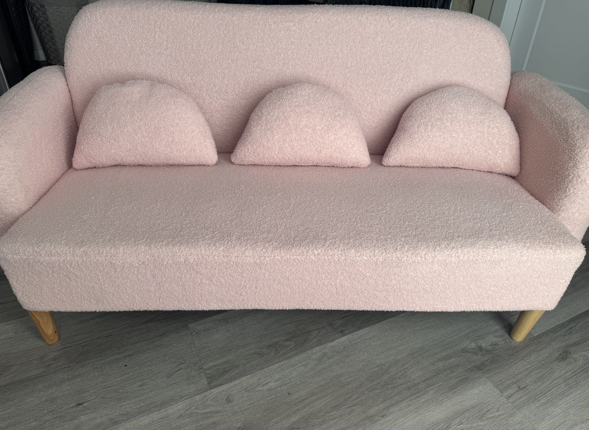 Pink fluffy/fury sofa Great Condition, Clean, Like New Side armrests are removable Dimensions: about 60" long 25" wide 16" tall Pickup Only Don't have any room for it Price is Negotiable GIVE ME AN OFFER