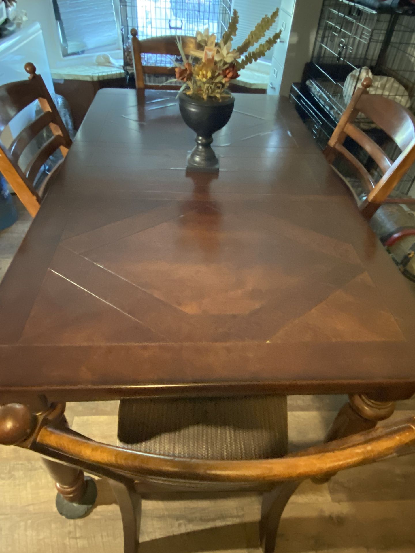 Beautiful dining table with 5 chairs 65 1/2 inches long 38 inches width 30 inches high