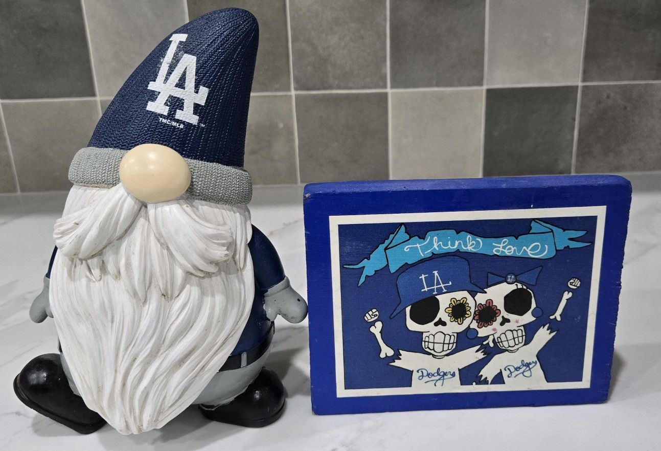 Los Angeles Dodgers Gnome and 8onch high by 4 inch wide and Dia De Los Muertos wooden plaque 6 inch wide by inch high local pickup West Covina