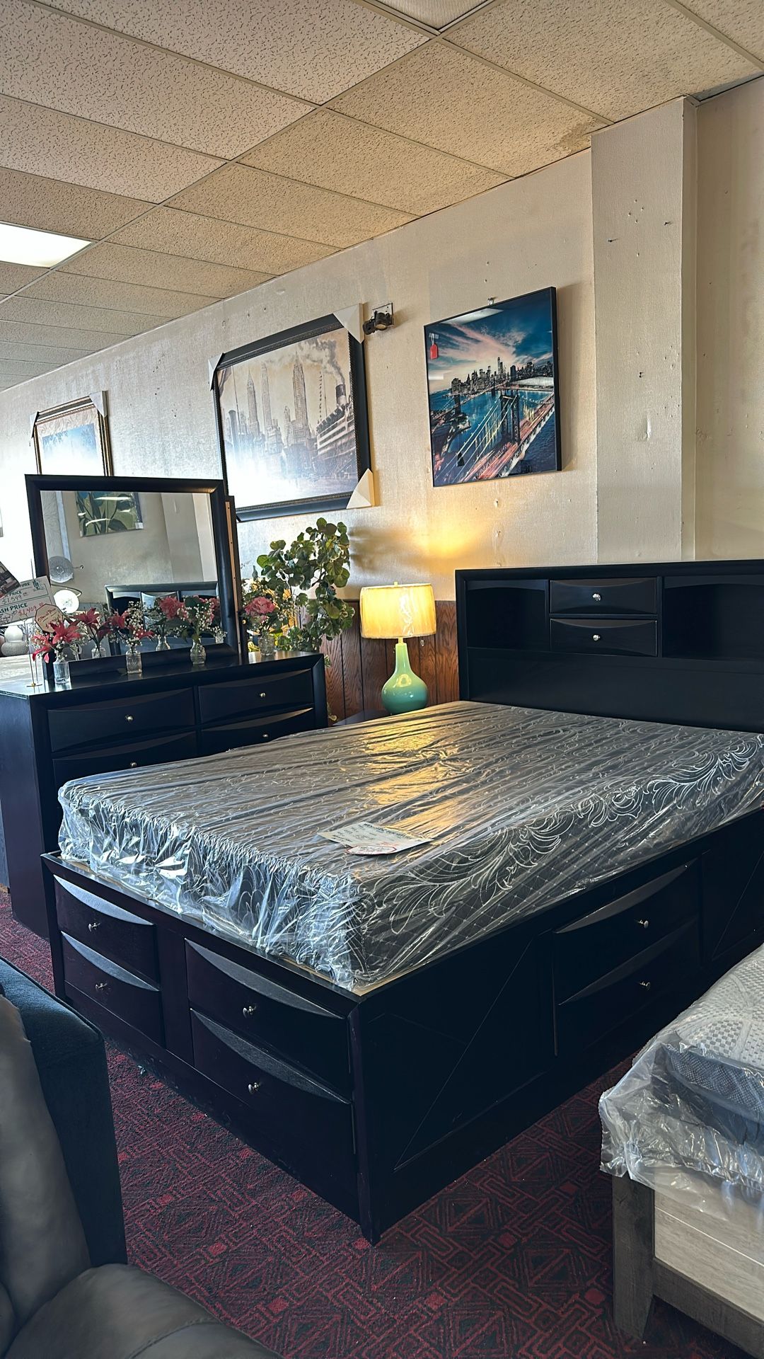 6pc queen platform storage bed set ready to go. Financing and layaway available please give us a call for more information 602 272 0034