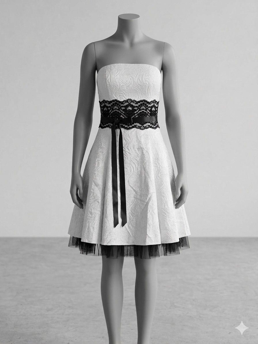 Jessica McClintock white lace strapless dress. Zippered back and lace waist accent. Original sale price $99.99. have original receipt. Dress is in excellent condition.