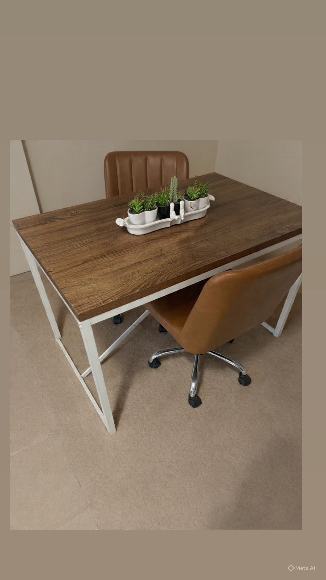 Wood (faux) Top And Metal Legs (strong) With 2 Leather Chairs- Kitchen Dinning Desk Table 45 X 30 X 30