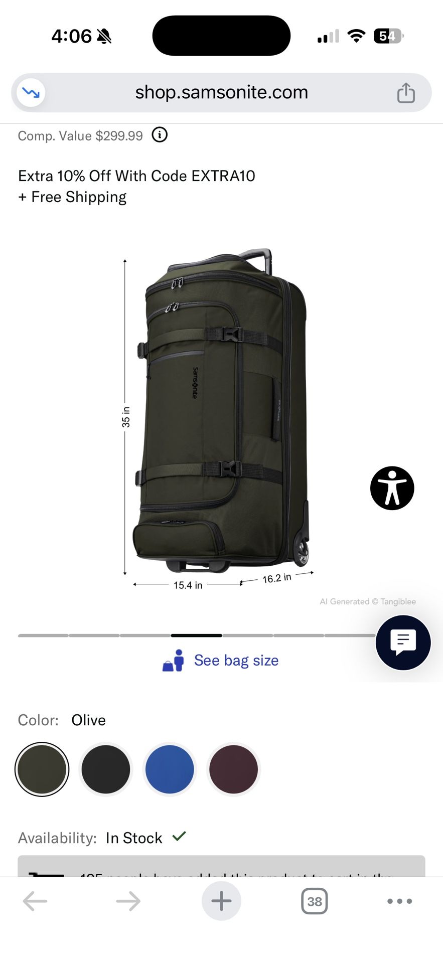 SAMSONITE DETOUR 34" WHEELED DUFFEL used once and has been in storage since.