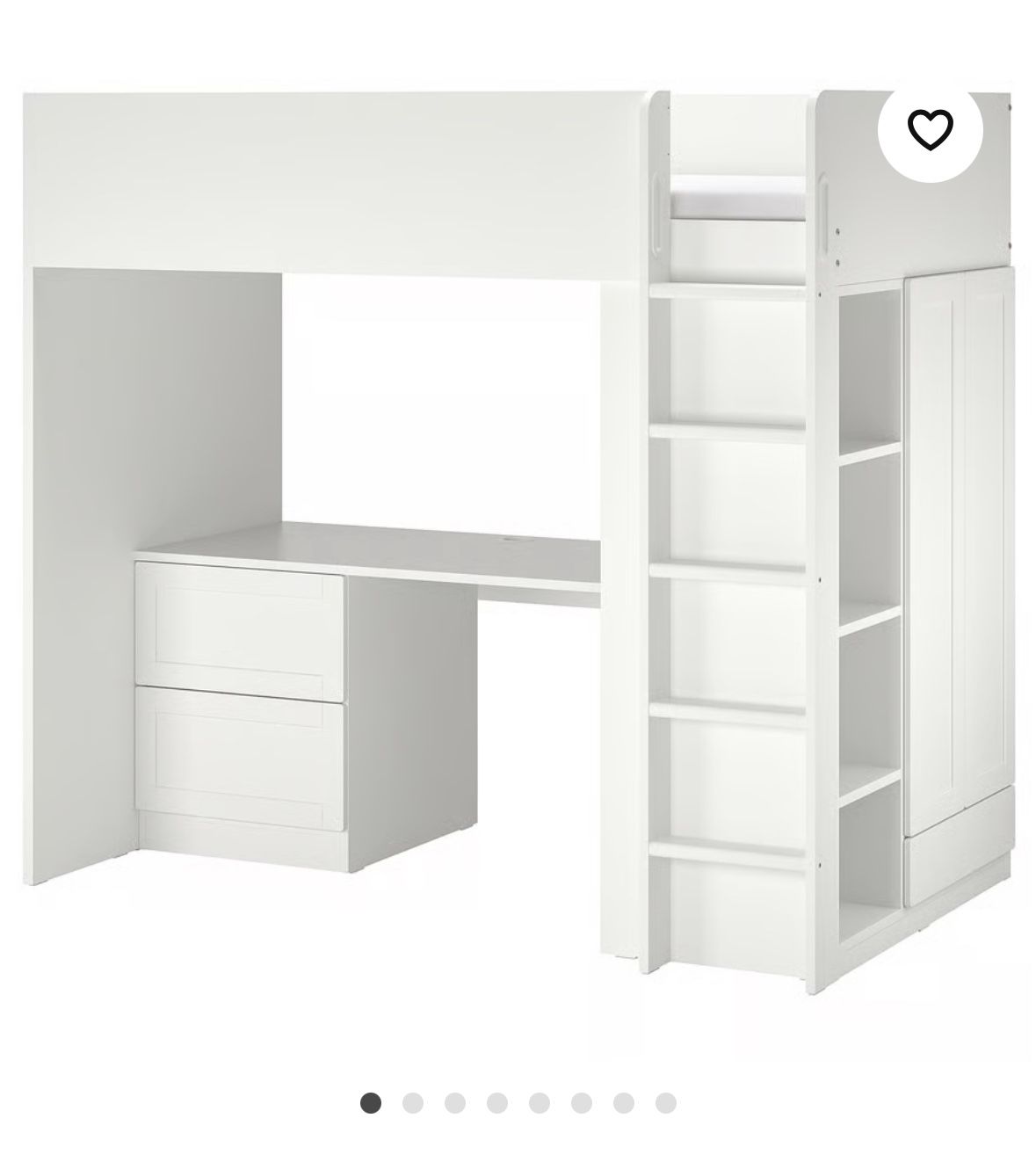 IKEA loft bed with desk, drawers, shelves, and a closet. Bought and built 2 years ago but like new. It was never used for sleeping. Smoke free house and no stickers were used. Buyer will need to be handy and able to take it down themselves and load it themselves. A truck will be needed :)