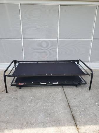 Hi riser twin daybed with pop-up trundle in very good condition. Can be put together to make a short king. Reduced to $250 cash only. Add twin mattresses for an additional $80 each. Clean. Smoke-free. Pet free. Firm on price. No haggling. Serious inquiries only. Already disassembled for easy transport. Local delivery is available for a small fee. Located off SW 60th Ave and SR 200 near Freedom Library.