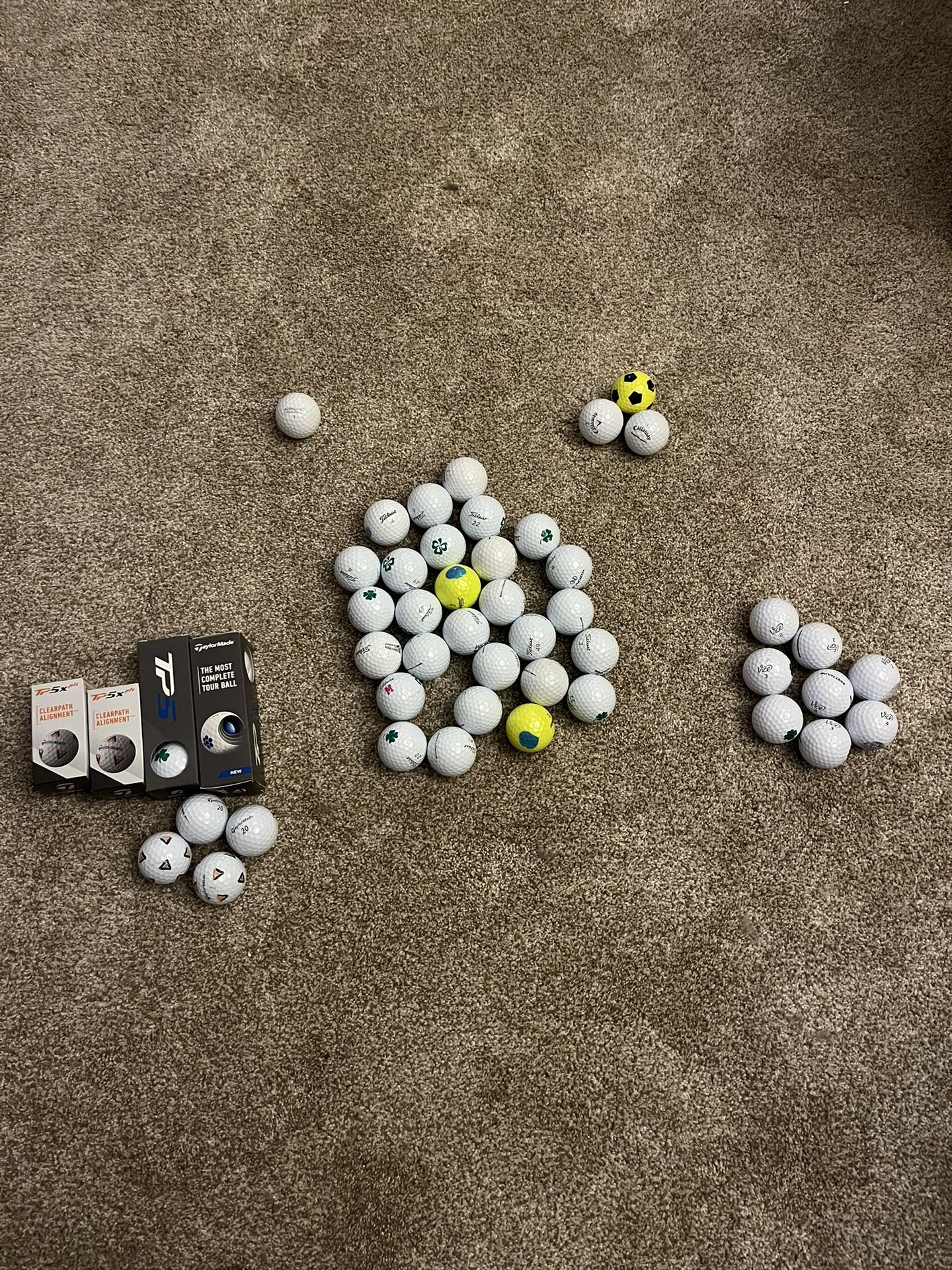 Buy some great quality golf balls from me!! Titleist x 28 TaylorMade x 14 Vice x 8 Callaway x 3 Kirkland x 1 You will enjoy spending time with your friends golfing, and the leisure will do you good!