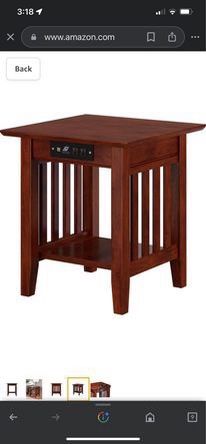 AH14214 Mission End Table With USB Charging Port Electrical Outlet And Bottom Shelf In Antique