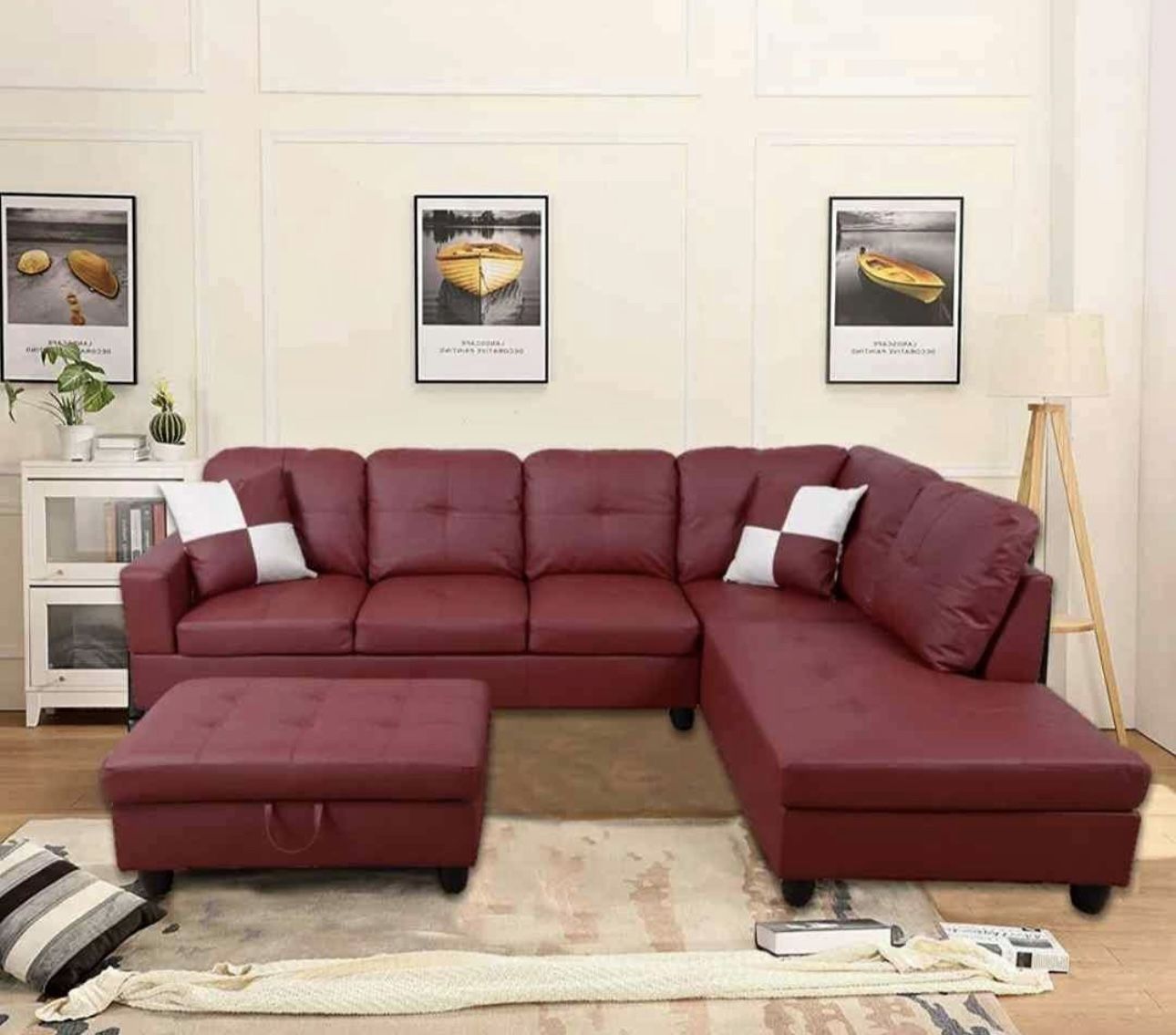 Sectional sofa couch and ottoman Brand new still in packaging this is display picture with decorative pillows and storage ottoman included Delivery to all areas