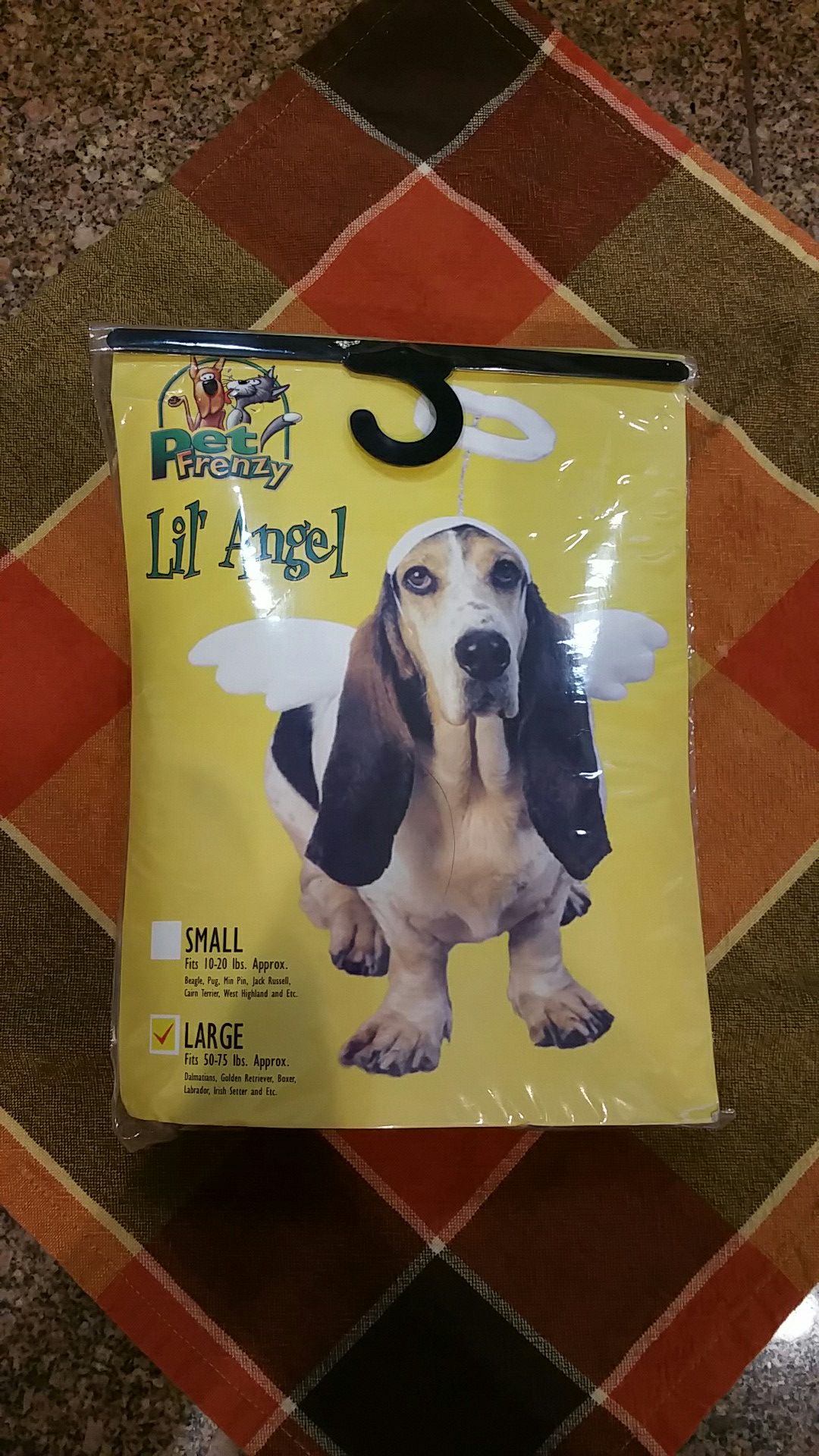 Used once. Like new, the wings are still attached. Size large 50-75 lbs. Take your best friend with you when you are out trick and treating with the kids. Make an offer.