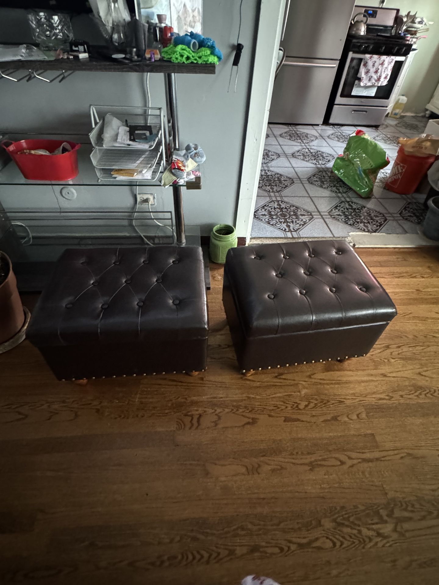 Brown tufted storage ottoman set of 2