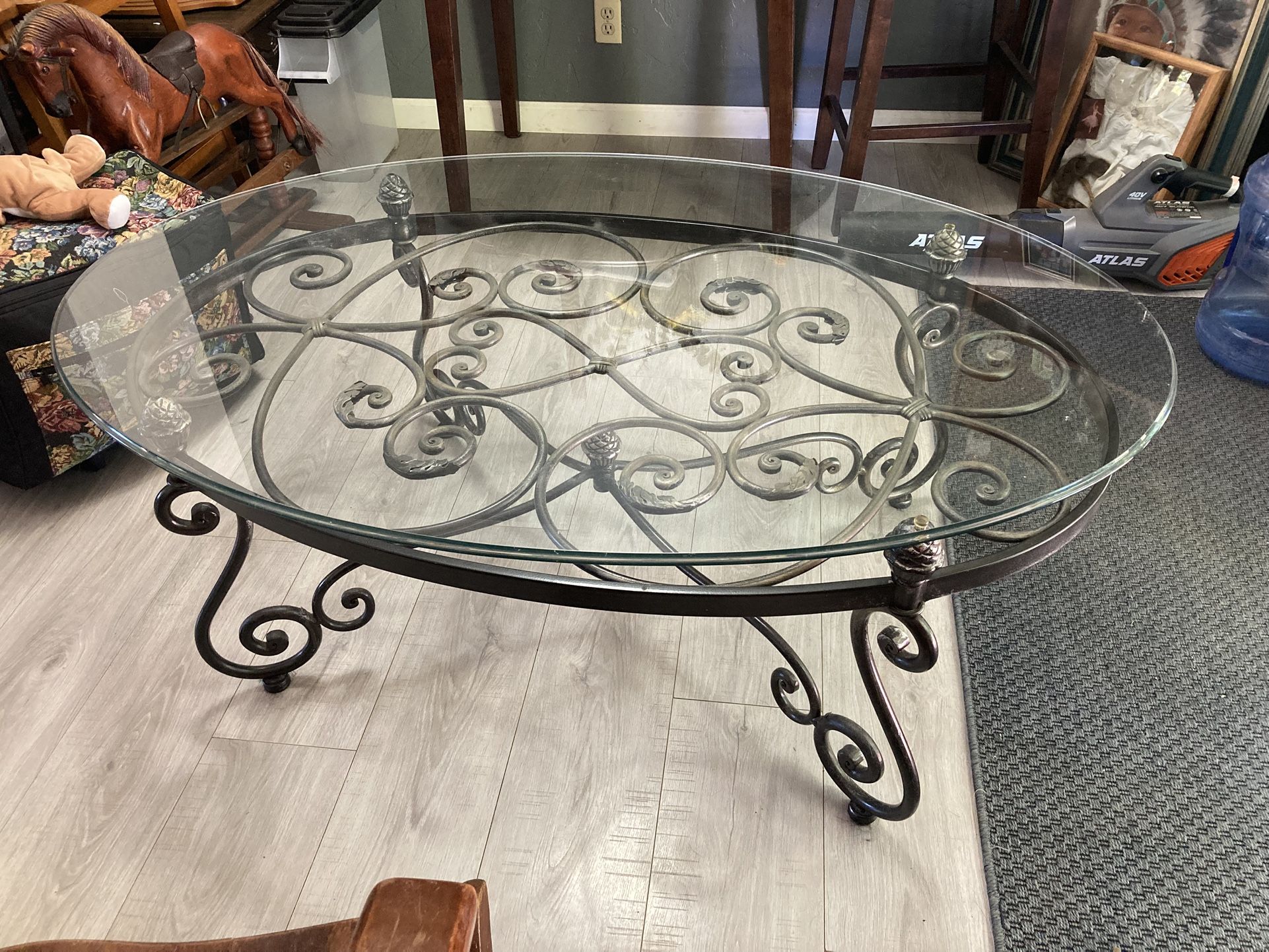Make me an offer. Pick-up only. Glass top and steel frame coffee table. Good condition. Only missing two two little plastic pieces that go between the glass and frame (pictured).