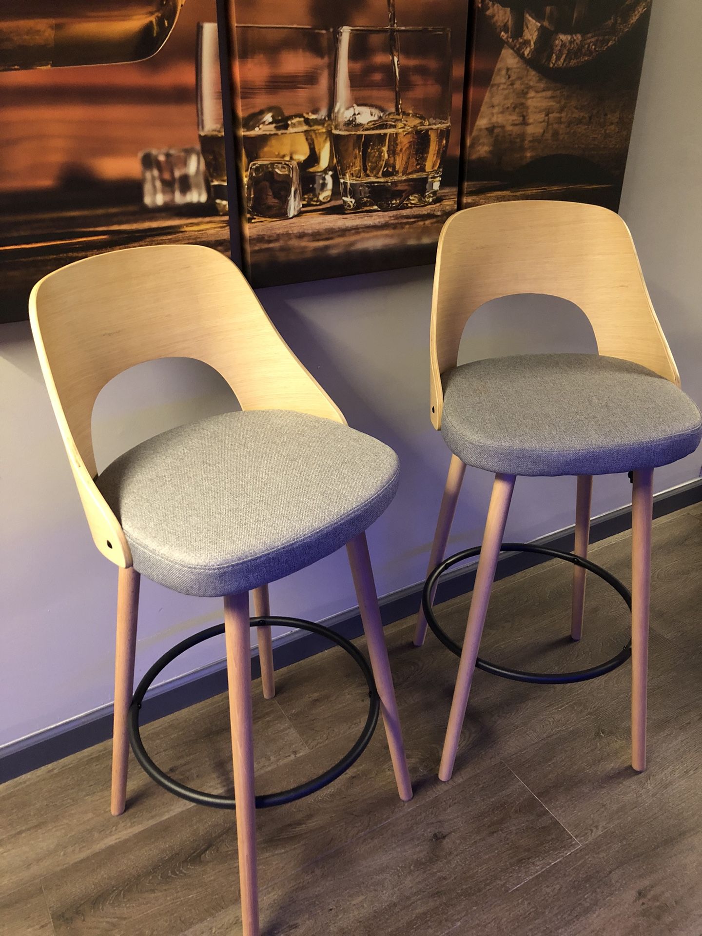 Nobpeint Wooden Barstools Gray Fabric Bar Height