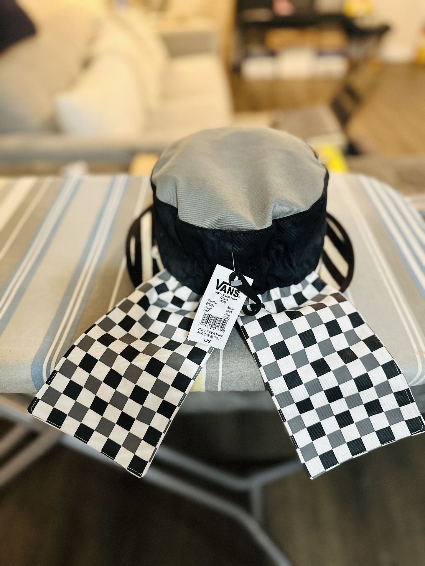 Check Board with flaps, black and white. Light weight hat, wide brim. Skate or BMX one size fits all New.