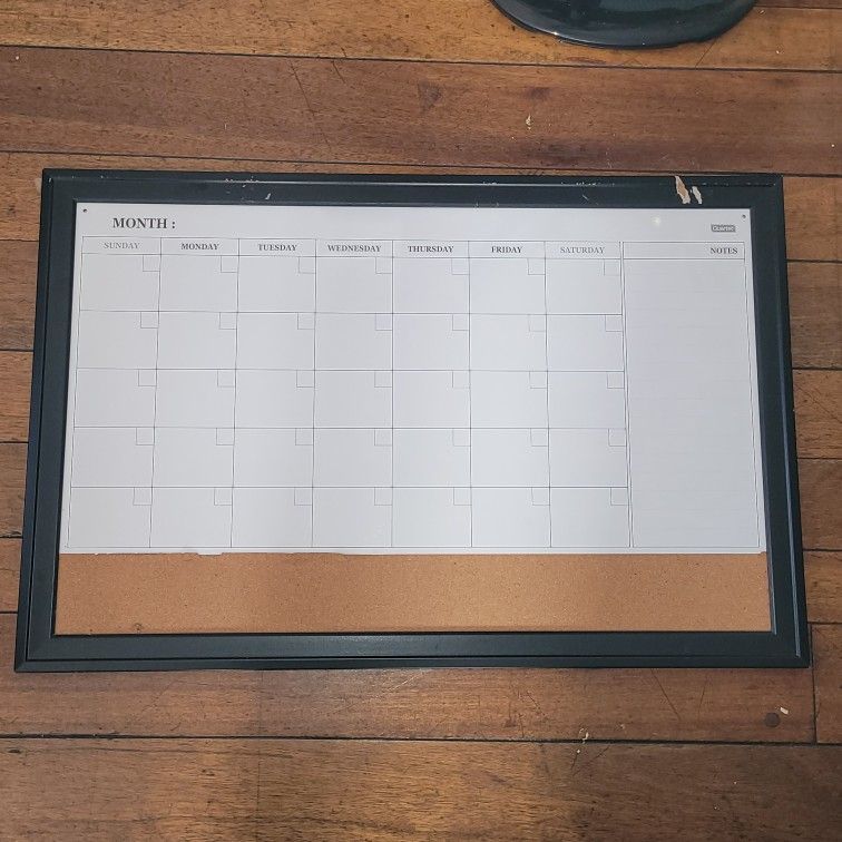 Quartet Home Décor Magnetic Combination Calendar Board, 23" x 35", Dry-Erase & Cork, 1-Month Calendar, Ebony Frame. This has been loved by a prop team. It was always on the truck and has gotten some dings. Still works great. I have some dry erase markers and dry erase spray cleaner, too. BETTER THAN NEW. LOVE IT AGAIN. LEONE THRIFT. Make me an offer! Check out my other LeoneTHRIFT items. Thank You!