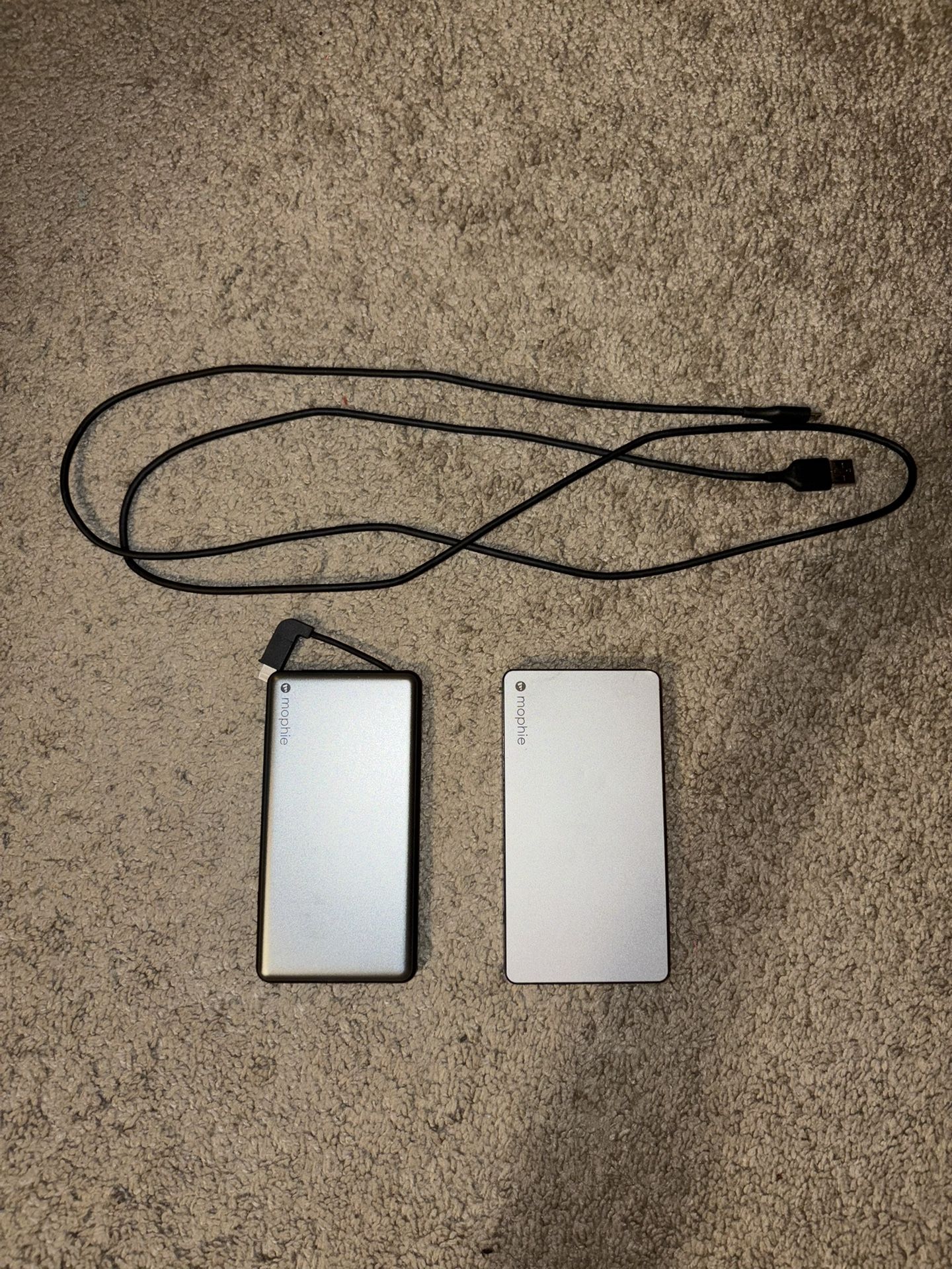 For sale are 2 separate items: - Mophie Portable Power Bank Battery Pack (with built in lightning cord) - $20 - Mophie Portable Power Bank Battery Pack - $20 Both compatible with USBA and USBB chargers. Please see other listing for iPhone charging cables, if needed. Buyer will need to pickup from my location. Let me know if you are interested!