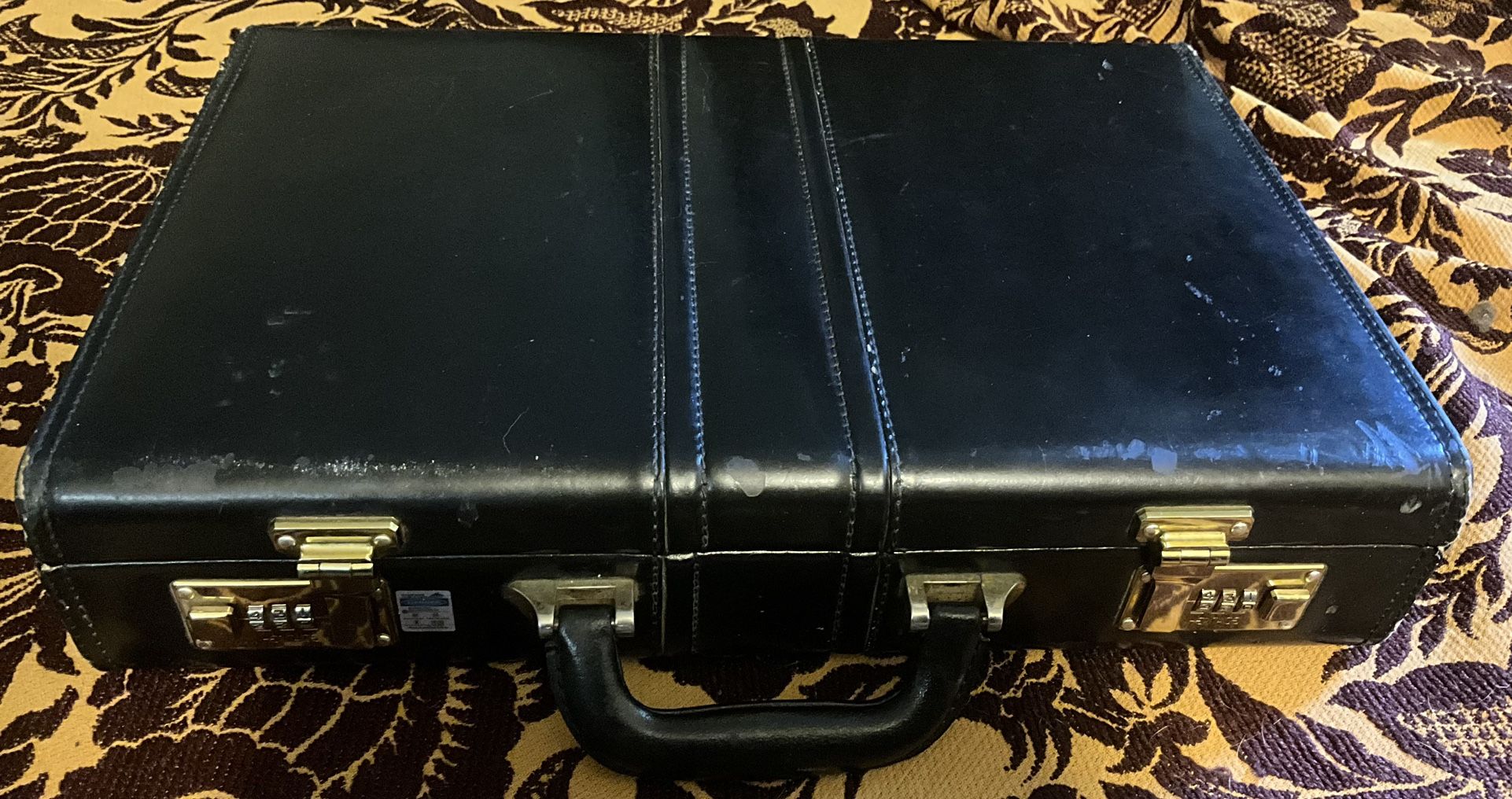 Vintage Heritage Black Leather Bound Briefcase Attache Case Computer Top Grain Dual triple Number Tumbler Locks