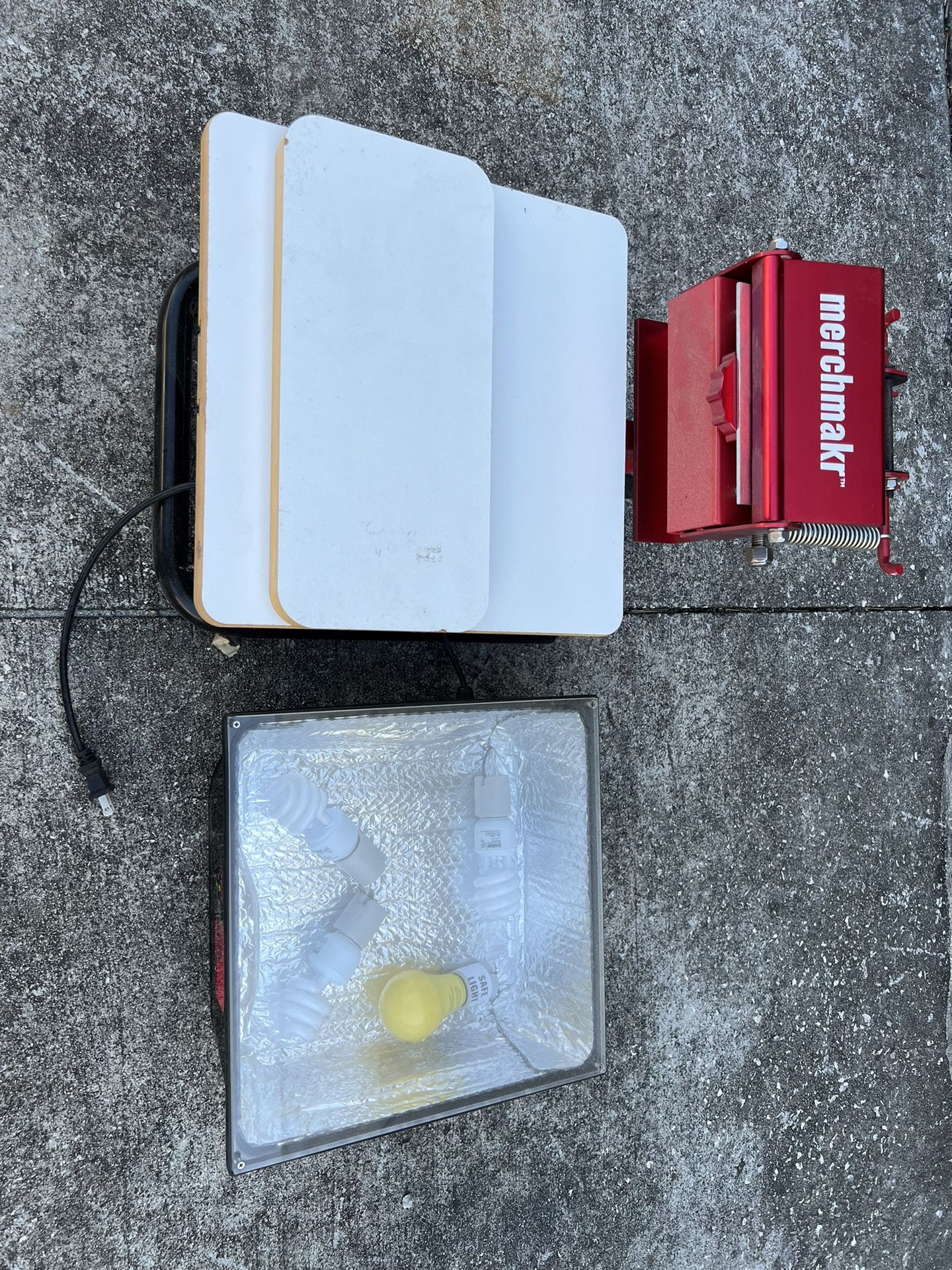 The Kit to do your own screen printing. Look it up online for more information. I also have two of the 17x17 aluminum screens not shown in the picture. You can buy the materials online or at an art supply. My daughter used it a few times and then it sat. Great deal as new the kit is $500. https://offerup.com/redirect/?o=aHR0cHM6Ly93d3cubWVyY2htYWtyLmNvbS8= First $125 takes it all. I am near downtown Orlando by Boone HS