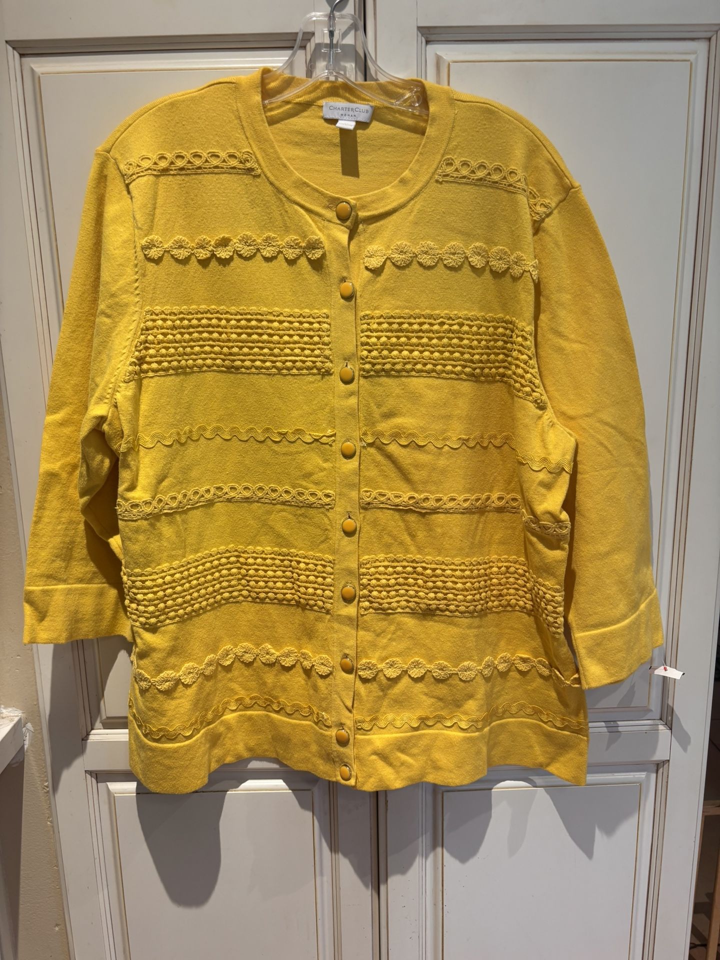 Charter Club Woman Size 2X Bright Yellow Textured Ling Sleeve Cardigan