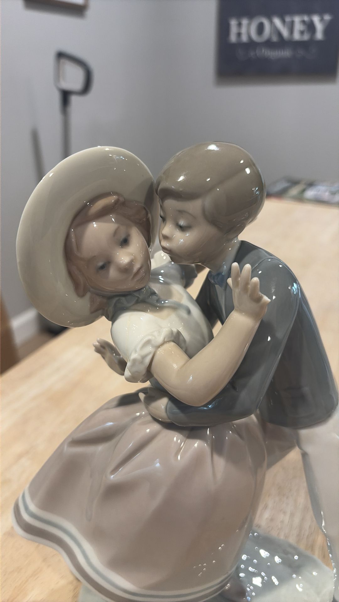 Lladro Porcelain Romantic Couple Figurine Courting Kiss Made in Spain