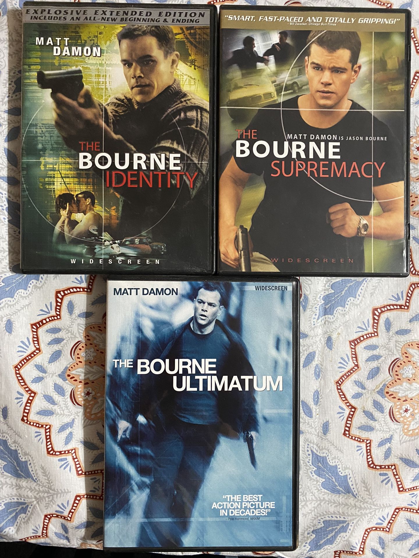 Original 3 movies in widescreen format on DVD. Starring Matt Damon, Julia Stiles. $10 for all 3!!!