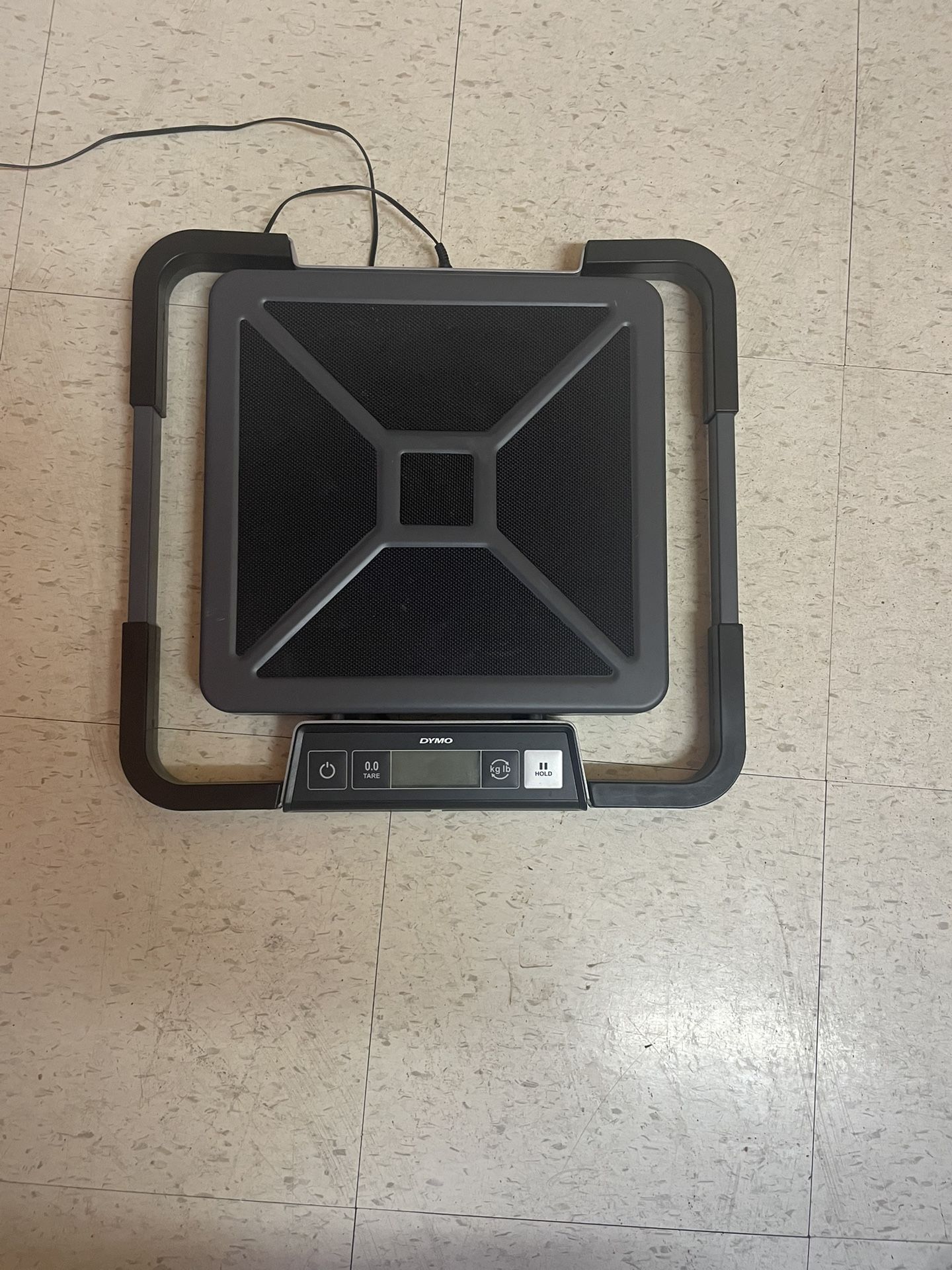 Dymo scale Quickly determine the exact weight and postage of large packages up to 100 lbs (0.2 lb increments) Hold feature locks weight display for 10 seconds Detachable LCD screen allows for handheld or wall-mounted viewing Battery operated or plug in