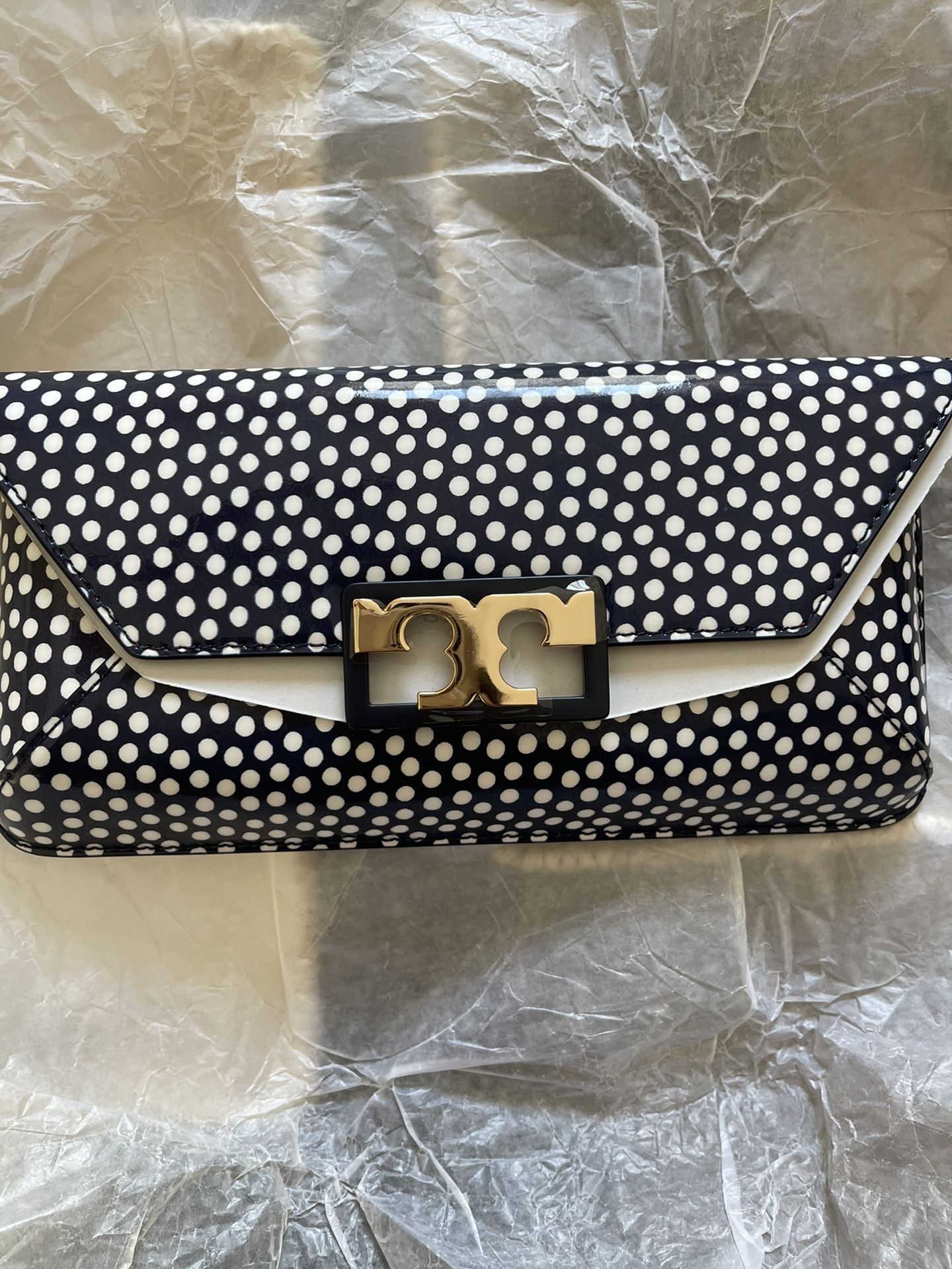 Brand New Tory Burch Clutch Navy & Polka Dots With bag Still has tag