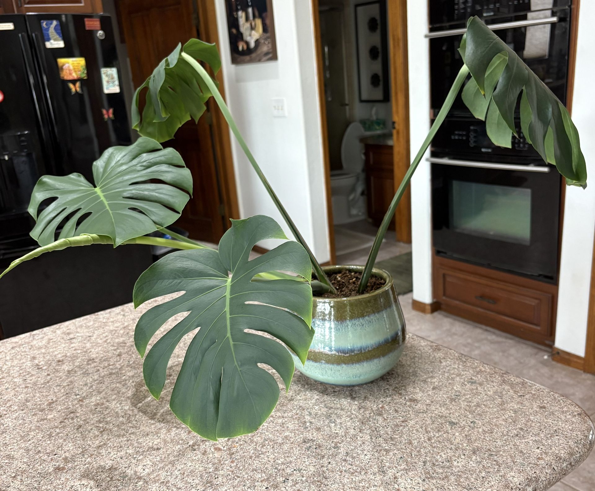 5 Leaf Monstera Plant In Blue-green Ceramic Pot