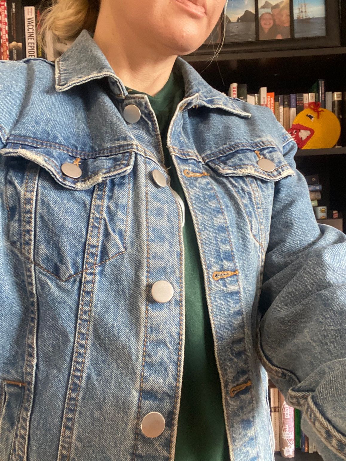 Like-new Original Use (brand name) Denim Jacket. Size small, but oversized. (It’s more like a larger medium)