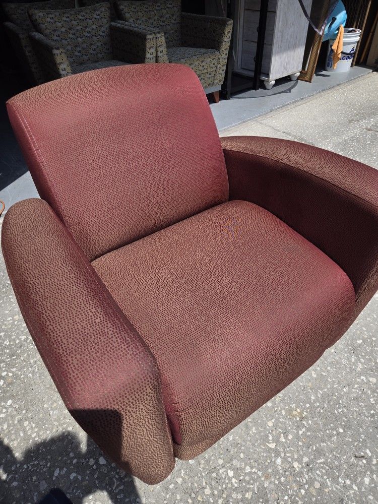 This is a very nice smooth mobile office lounge chair with 2 front casters. The design is very unique and displays great! The pictures show what looks like fading but its just the angle of the photo! Excellent condition!! **Please follow me for more! This is the beginning of Rob's Furniture & Goods, LLC and I will be continuously adding more furniture and goods for sale! Thank you for looking!**