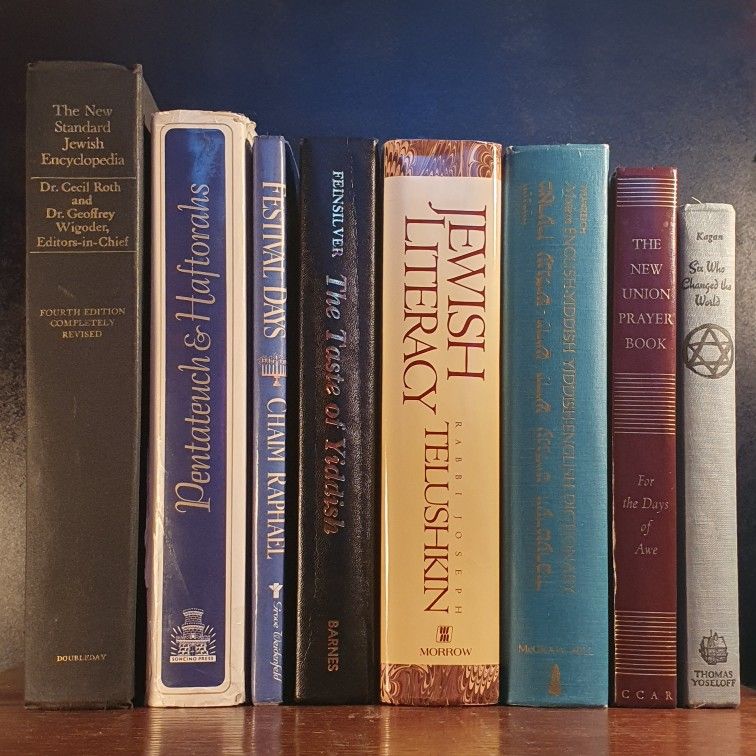 This is a wonderful bundle of 8 vintage and classic Jewish hardcover books—a fantastic opportunity for collectors, researchers, students, or anyone building a Judaica library. All books are hardcover and in gently used vintage condition, as pictured. Titles & Details: 1. Six Who Changed the World Author: Henry Enoch Kagan Publisher: Thomas Yoseloff Publication Year: 1969 Condition: Good, no writing, minimal wear 2. Gates of Repentance: The New Union Prayerbook for the Days of Awe Publisher: Central Conference of American Rabbis Publication Year: 1978 (revised 1996) Condition: Scuffs on cover, no writing. 3. The New Comprehensive English-Yiddish Yiddish-English Dictionary Publisher: McGraw-Hill Book Company / YIVO Institute for Jewish Research Publication Year: 1968 Condition: good, no visible writing, clean pages ISBN: 07-069038-3 4. Jewish Literacy: The Most Important Things to Know About the Jewish Religion, Its People, and Its History Author: Rabbi Joseph Telushkin Publisher: William Morrow and Company, Inc. Publication Year: 1991 ISBN: 0-(contact info removed)6-2 Condition: writing on endpapers and throughout. 5. The Taste of Yiddish Author: Lillian Mermin Feinsilver Publisher: A.S. Barnes and Co., Inc. (Cranbury, NJ, USA); Thomas Yoseloff Ltd. (London, England) Publication Year: Reprinted 1980 (original copyright 1970) ISBN: 0-(contact info removed)5-2 (cloth), 0-(contact info removed)7-X (paper)Library of Congress Catalog Number: 70-88220 Condition: good, writing and ex libris plate on front endpapers, clean pages throughout 6. The Jewish Festivals: A Guide to Their History and Observance (Festival Days) Author: Chaim Raphael Publisher: G. P. Putnam's Sons (first American edition) Publication Year: 1990 (First American Edition, originally 1959) ISBN: 0-(contact info removed)1-7 Condition: good, personalized message on front endpaper, clean throughout 7. The Pentateuch & Haftorahs (Second Edition, Edited by Dr. J. H. Hertz) Publisher: Soncino Press, London Publication Year: 1957 Condition: good, clean pages, some light water stains on page edges only with no warping 8. The New Standard Jewish Encyclopedia Publisher: Encyclopaedia Publishing Company Ltd. Publication Year: 1984 (Revised edition)Dr Condition: good, clean pages This Jewish book bundle includes eight vintage hardcover titles: "The New Comprehensive English-Yiddish Yiddish-English Dictionary" (McGraw-Hill/YIVO Institute for Jewish Research, 1968, ISBN: 07-069038-3), "Jewish Literacy: The Most Important Things to Know About the Jewish Religion, Its People, and Its History" by Rabbi Joseph Telushkin (William Morrow, 1991, ISBN: 0-(contact info removed)6-2), "Festival Days: A History of Jewish Celebrations" by Chaim Raphael (G.P. Putnam's Sons, 1990, ISBN: 0-(contact info removed)1-7), "The Taste of Yiddish" by Lillian Mermin Feinsilver (A.S. Barnes & Co./Thomas Yoseloff Ltd., 1980 reprint, ISBN: 0-(contact info removed)5-2 cloth, 0-(contact info removed)7-X paper), "The Pentateuch & Haftorahs" edited by Dr. J.H. Hertz (Soncino Press, London, Second Edition 1957), "The New Standard Jewish Encyclopedia" (Encyclopaedia Publishing Company, 1984 revised edition), "Six Who Changed the World" by Henry Enoch Kagan (Thomas Yoseloff, 1969), and "Gates of Repentance: The New Union Prayerbook for the Days of Awe" (Central Conference of American Rabbis, 1978/revised 1996). These books cover Jewish history, religion, Yiddish language, Jewish holidays, prayer, and influential figures, offering a rich Judaica library for study, research, or collection. Located in Sunrise Manor 89156 northeast Vegas near Nellis and Lake Mead Blvd.