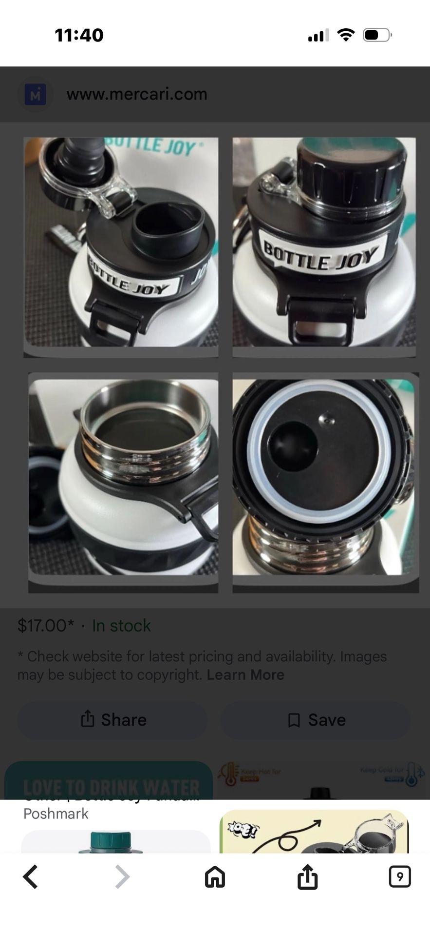 Cool BOTTLE JOY water bottle. Black and white design. Has a convenient strap for carrying. Flip-top lid for easy access. Great for staying hydrated on the go!