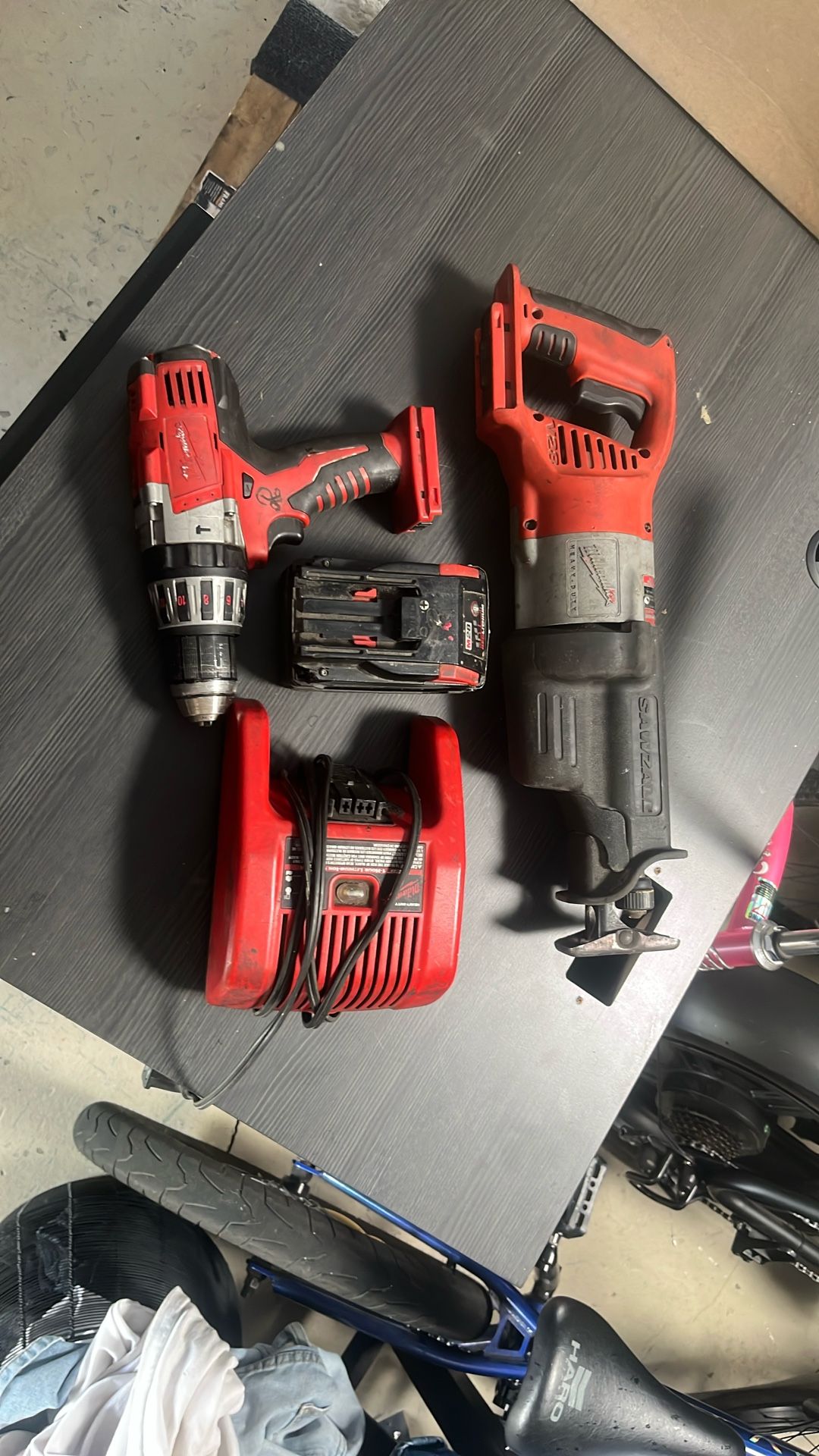 28V Milwaukee Sawall And Hammer Drill With Battery And Charger