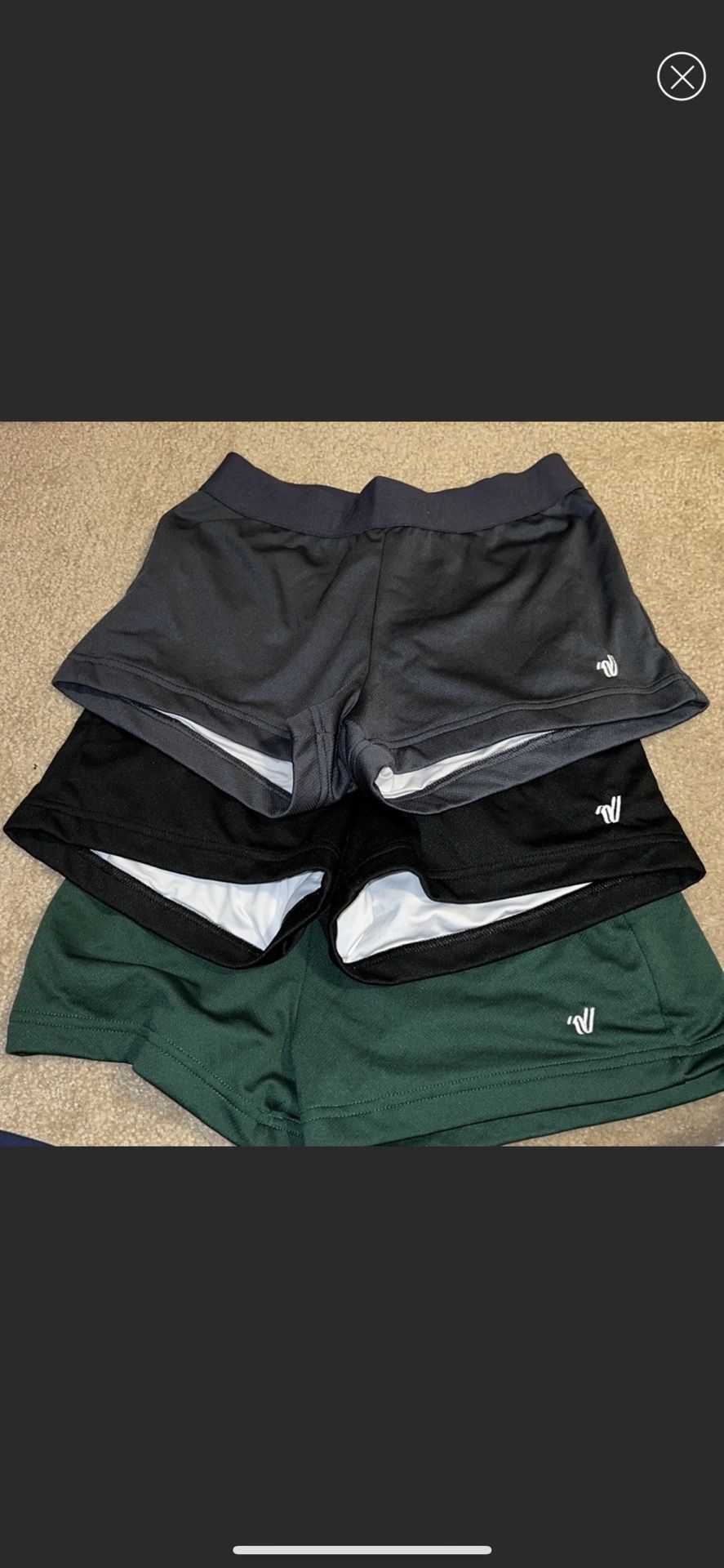Varsity cheer shorts - with liners 3 pr- black/green/gray EUC- worn once Smoke and pet free home