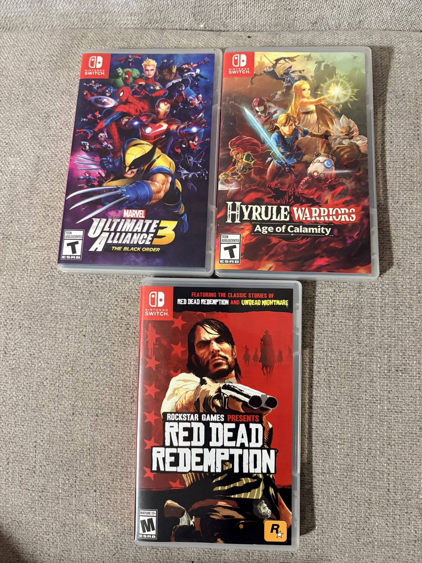 Marvel ultimate alliance 3-$35 Hyrule warriors age of calamity-$45 Super Mario odyssey-$35 Red dead redemption-$35 All games in perfect working condition they also work for the switch 2 prices are firm for now or you can buy all 4 only $120! Great deal saving you a lot of money lmk if interested