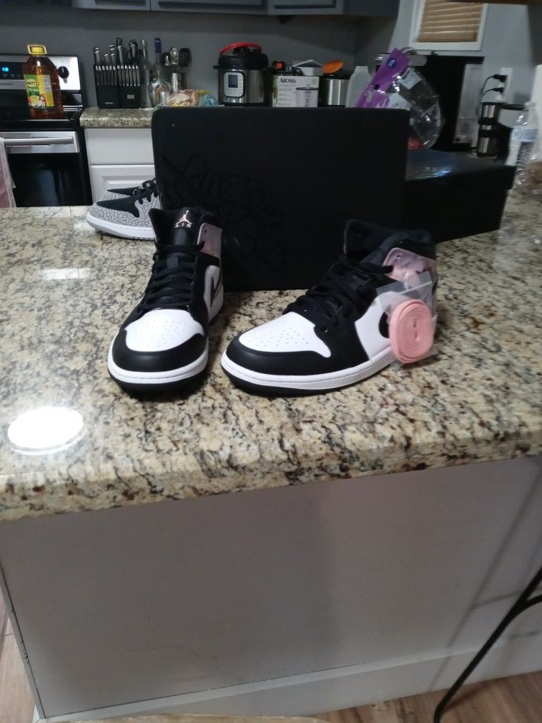 DEADSTOCK Jordan 1 Mid SE black/bleached coral/ white. Extra set of coral colored laces to match the Jumpman logo!