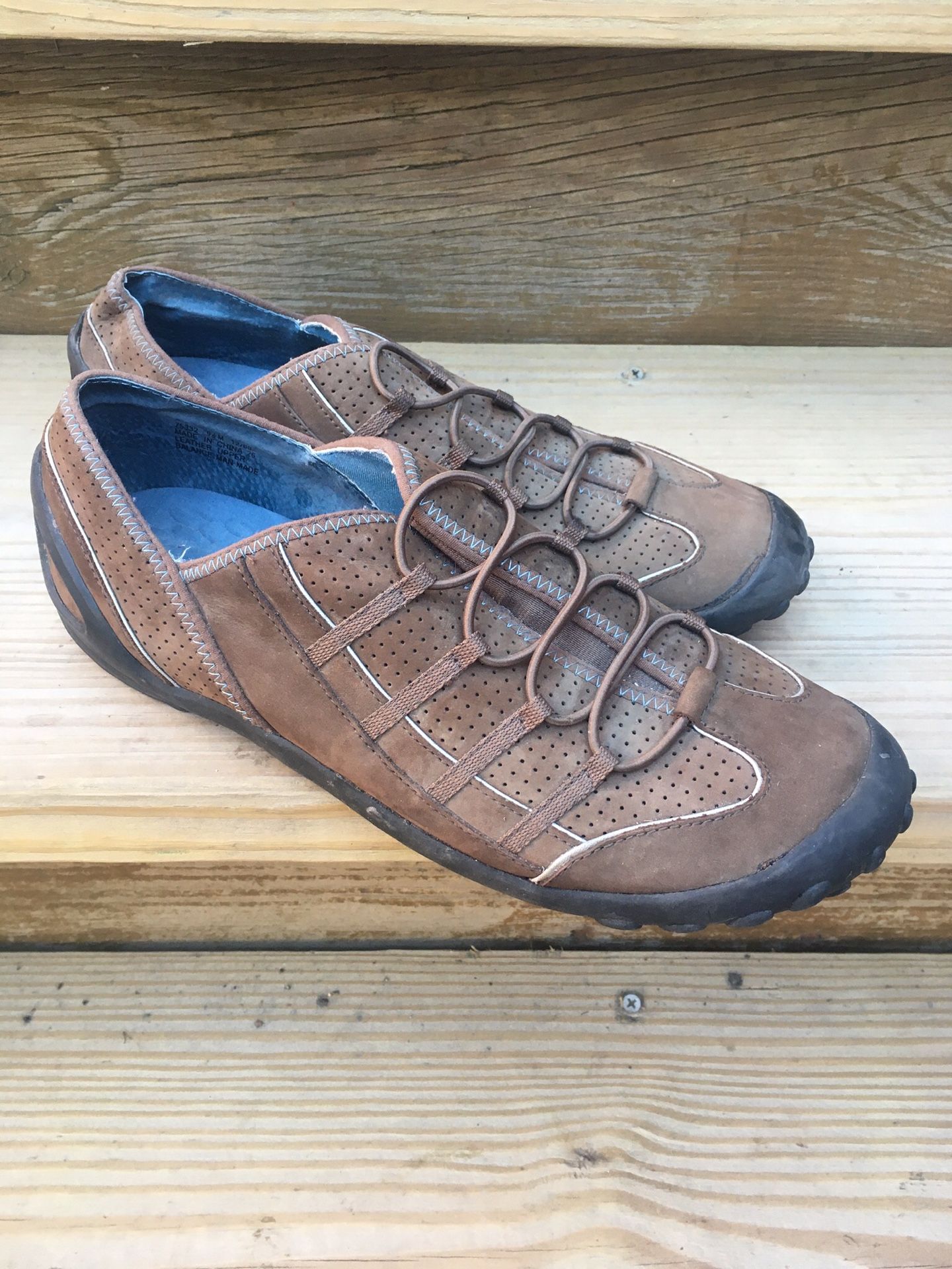 Women's Privo Brown Nubuck Leather Elastic Slip Ons Size 9.5 - Excellent Condition These were gently worn, very clean and in excellent condition. Removable padded liners for extra comfort and easy cleaning. Bottom soles have no obvious wear. These were over 100.00 new. Model 75332. From a smoke and pet free home. Check out in person before purchasing. Thanks for looking.