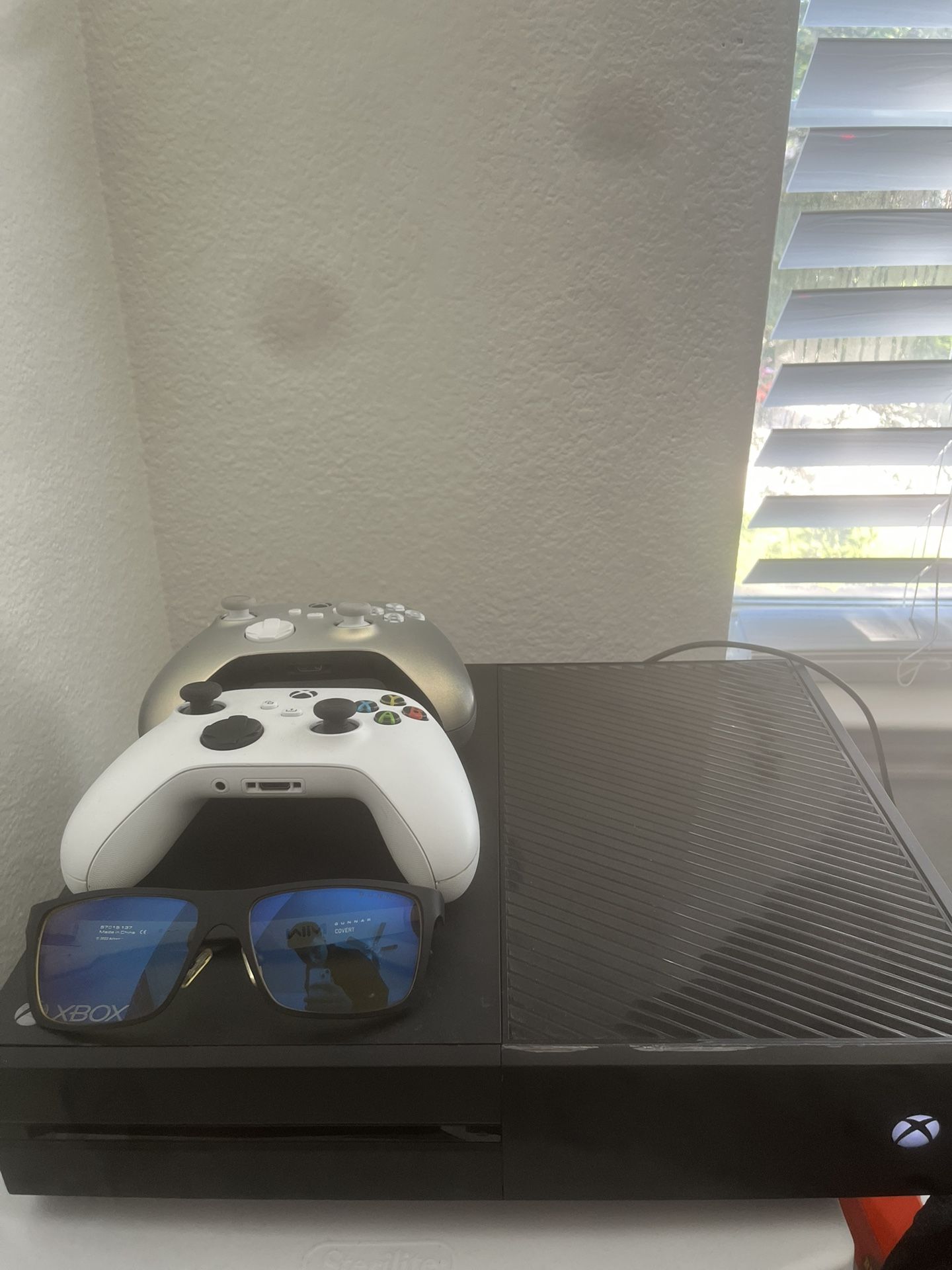 1TB Xbox One With White and Gold Controller and Gaming Glasses