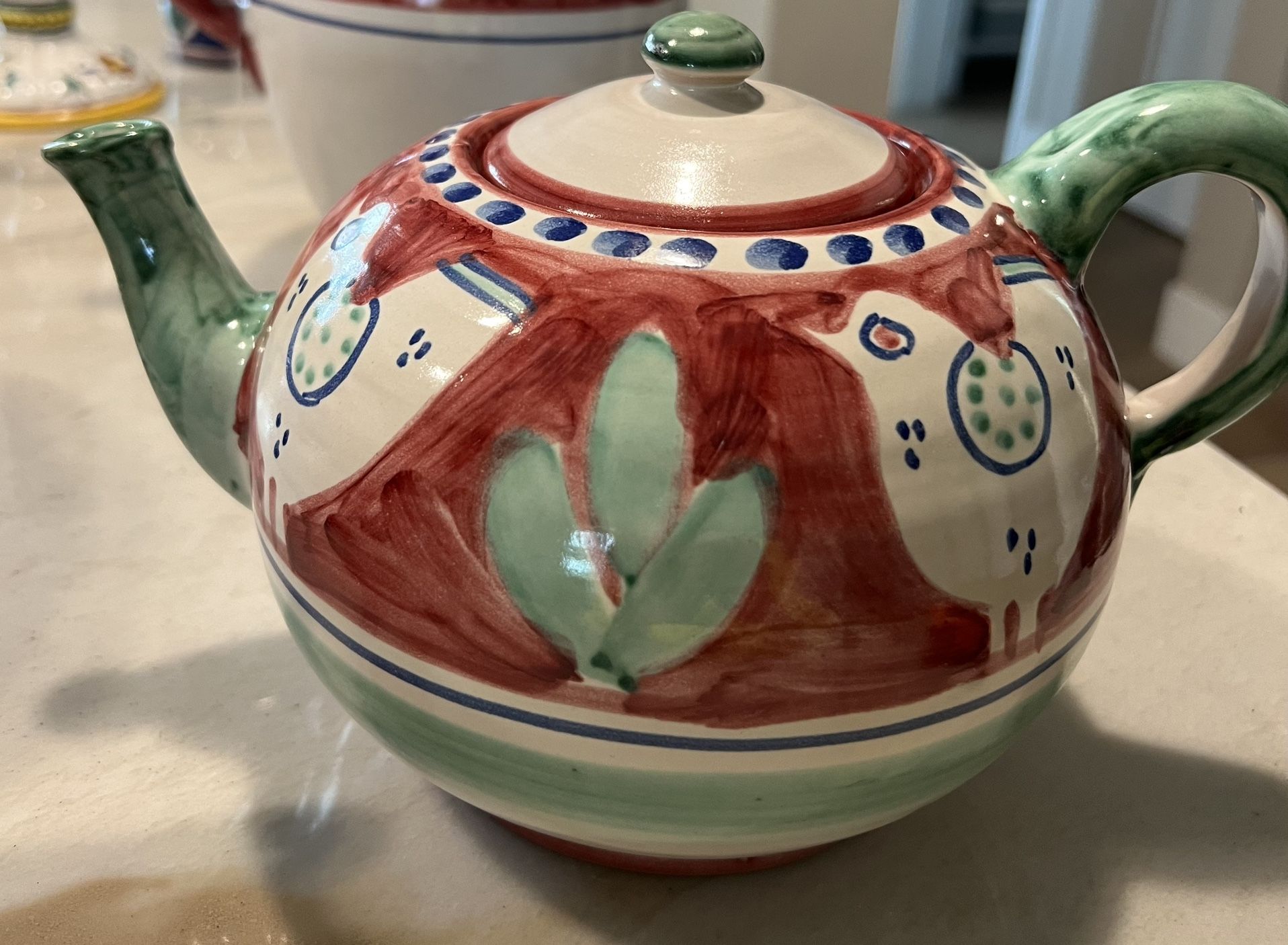 Tea pot with lid 5”H x 10”W. Made in Italy. Hand-painted. Campagna Red. Local pick up only - San Diego.