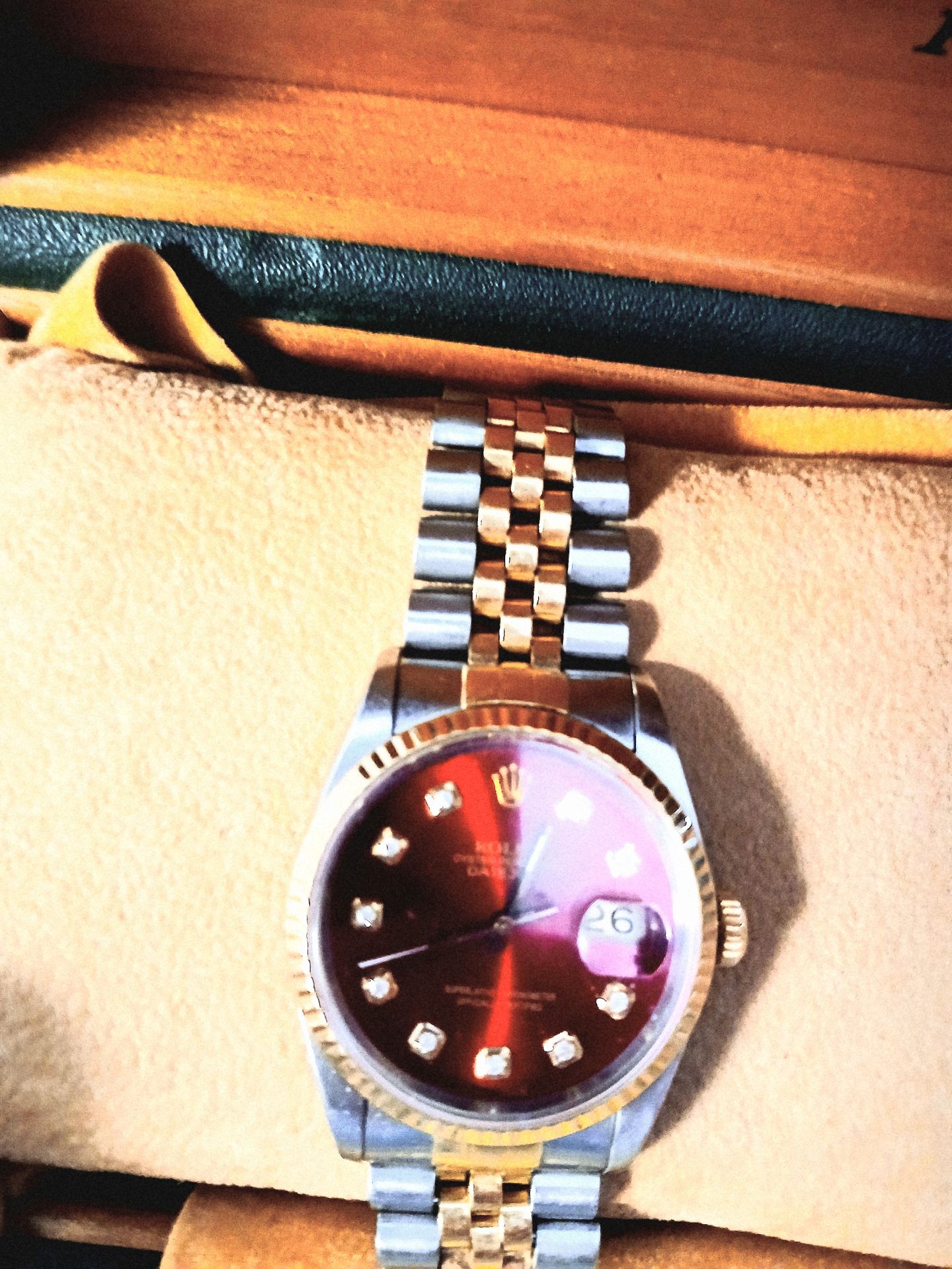 Rolex Datejust 16233 36mm Mens Two-Tone red diamond Dial Fluted Bezel Jubilee Bracelet