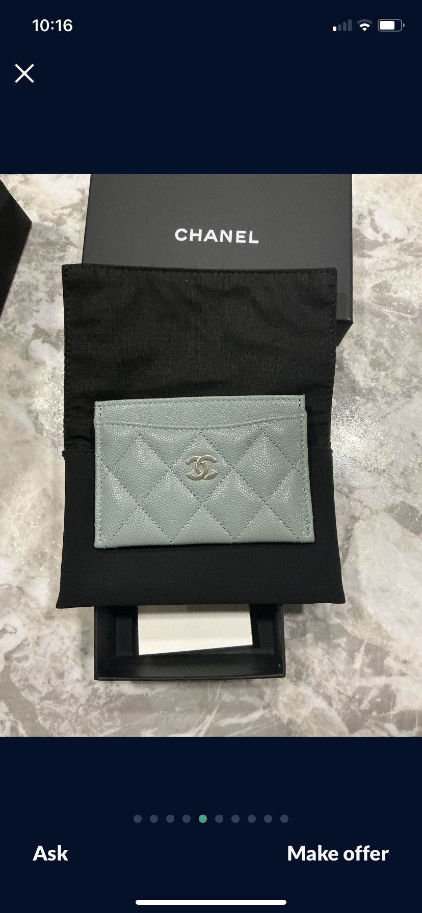 • Chanel Card Holder • From the Cruise 2024 Collection by Virginie Viard • Grey • Interlocking CC Logo & Caviar Leather • Silver-Tone Hardware • Nylon Lining & Single Interior Pocket with Card Slots • Includes Box & Dust Bag