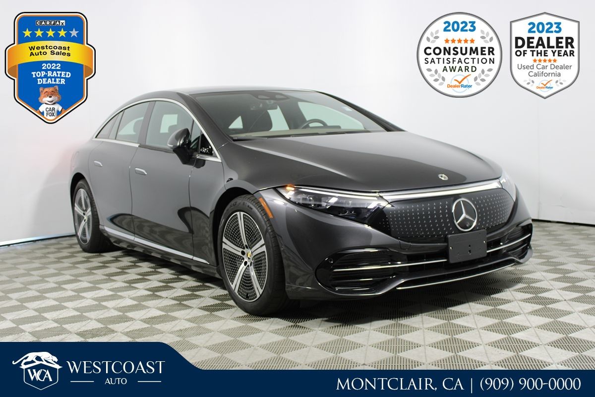 Our electrified 2022 Mercedes-Benz EQS 450 Sedan with the AMG® Line Interior Pack is a stunning example of automotive excellence in Graphite Grey Metallic! Motivated by a 245kW Electric Motor generating 329hp tethered to a Single Speed Automatic transmission for almost instant acceleration. This Rear Wheel Drive flagship sedan also features an Airmatic suspension with active damping for dynamic handling, and its 107.8kWh battery pack enables an all-electric driving range of nearly 350miles at nearly 97MPGe on the highway. Incredibly aerodynamic, our EQS is impossible to ignore with its bold LED lighting, panoramic sunroof, heated power-folding mirrors, and alloy wheels. Absolute luxury awaits in our modern and dramatic 450 cabin. Highlights include exclusive AMG® upgrades such as leather front sport seats, a matching steering wheel, and stainless steel pedals to enhance a remarkable array of standard technology like facial recognition for key vehicle settings. A 12.3-inch driver display and 12.8-inch touchscreen help you command your world with intelligent full-color navigation, wireless Android Auto®/Apple CarPlay®, Bluetooth®, and a Burmester® 3D sound system. More Mercedes-Benz tech features take care of you with surround vision, front/rear automatic braking, evasive steering assistance, active blind-spot assistance, and so much more. Our EQS 450 provides electric luxury the way it's meant to be! Save this Page and Call for Availability. We Know You Will Enjoy Your Test Drive Towards Ownership! Great quality, easy financing and affordable prices aren't the only things that make Westcoast Auto Sales the first choice of many discerning auto buyers. Stop in and See California's Dealer of the Year!