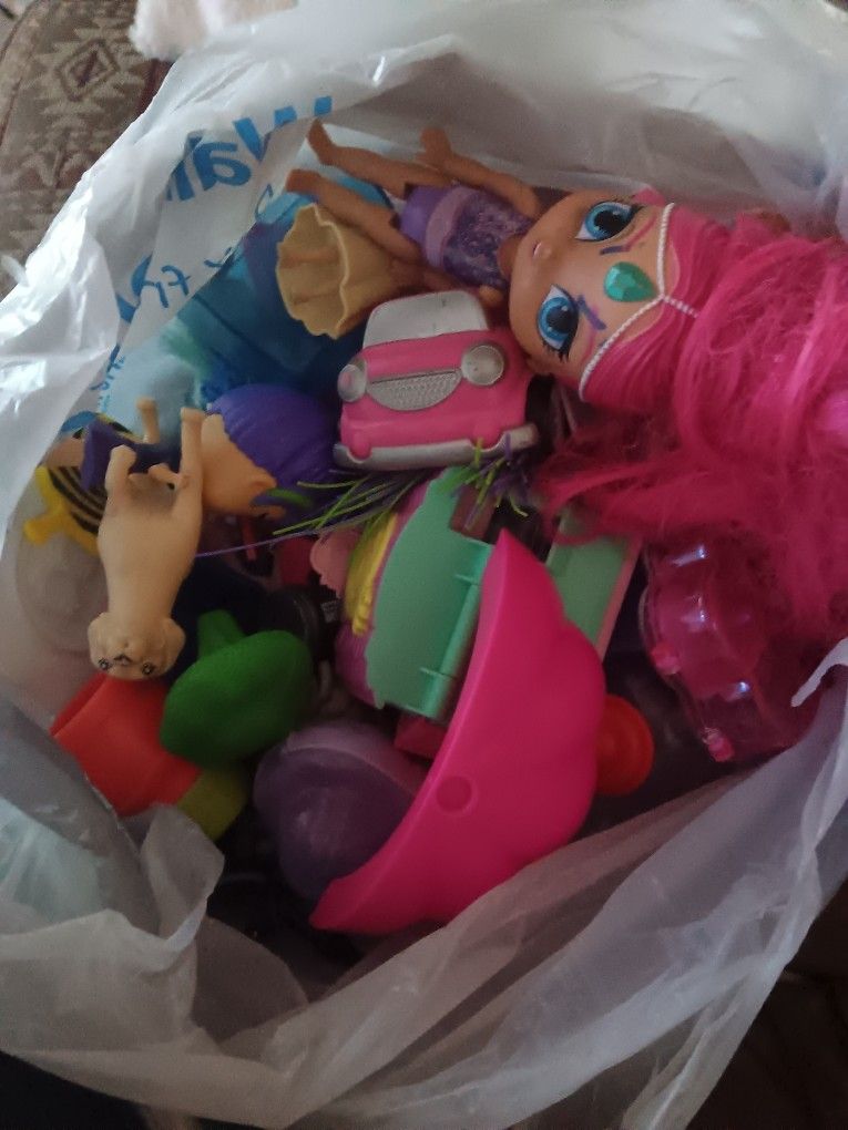 Little girl toys 25 dollars for bag or 1 dollar a toy but doll 2 dollars