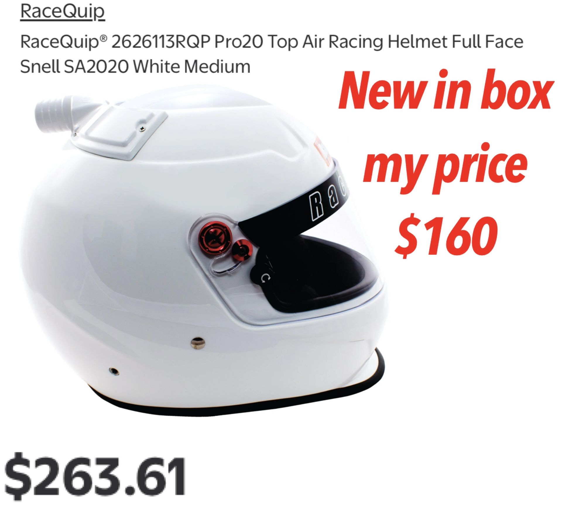 New in box size medium adult RaceQuip® RQP Pro20 Top Air Racing Helmet Full Face Snell SA2020 White Medium $160 firm pick up east Palmdale seri