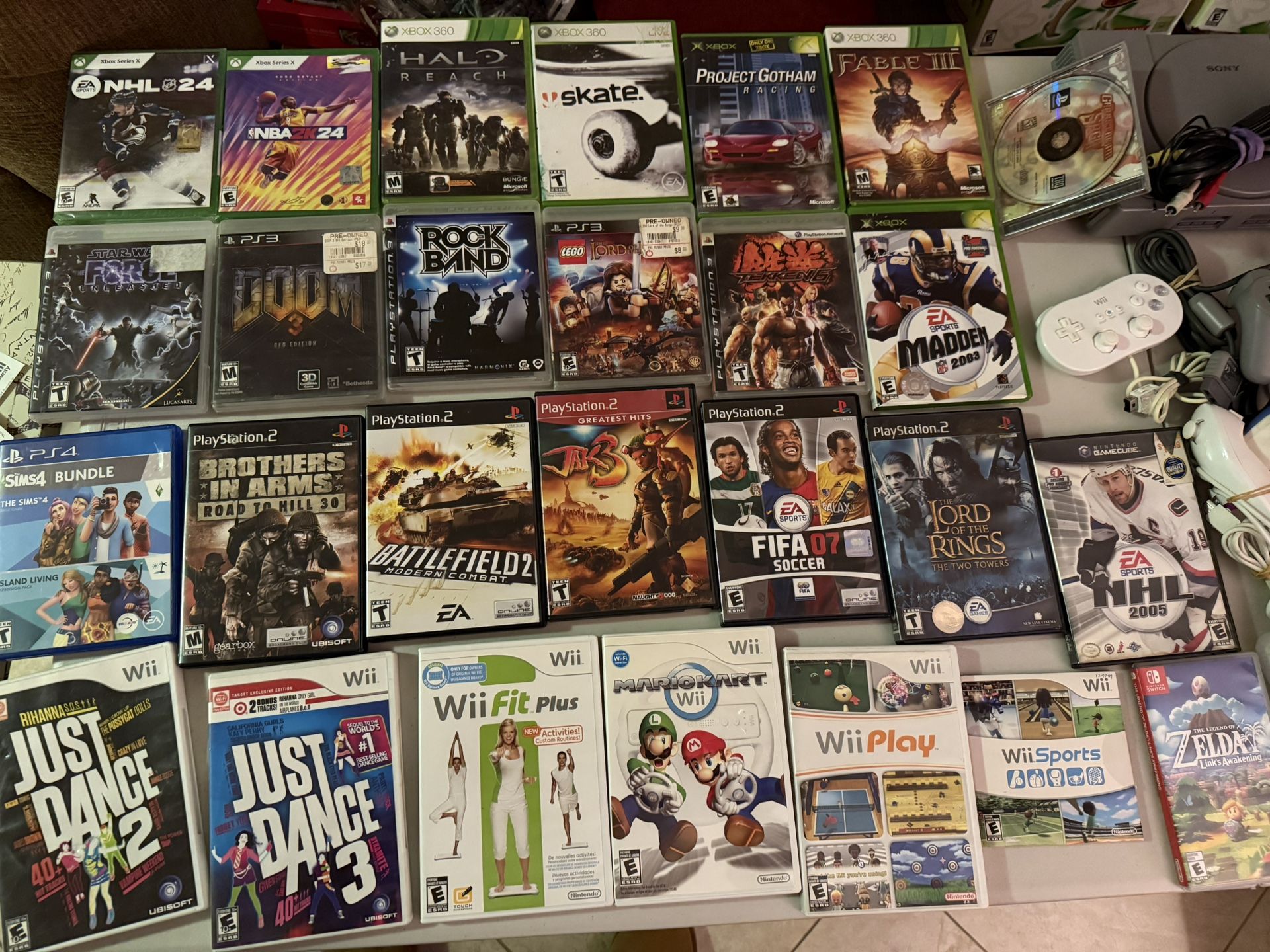 💰 $12 per game – Most are Complete in Box (CIB)!�💥 Buy more, get a discount – bundle deals available! Selling a wide range of video games across multiple platforms — from retro to current gen. All in good condition, tested, and ready to play. 🎮 Available Games – $12 Each: ✅ Xbox Series X: • NBA 2K24 (Factory Sealed) • NHL 24 (Factory Sealed) ✅ Xbox One: • Valentino Rossi: The Game – Day One Edition ✅ Xbox 360: • Perfect Dark Zero (Collector’s Edition) • Skate • Fable III • Halo: Reach ✅ Original Xbox: • Madden 2003 • Project Gotham Racing ✅ PS1: • Granstream Saga Black Label – $32 ✅ PS2: • FIFA 07 • Grand Theft Auto: Vice City • Jak 3 • Lord of the Rings: The Two Towers • Battlefield 2: Modern Combat • Brothers in Arms: Road to Hill 30 ✅ PS3: • Star Wars: The Force Unleashed (CIB) • Need for Speed: Most Wanted (Limited Edition) • Doom 3 – BFG Edition • Rock Band ✅ PS4: • The Sims 4 Bundle ✅ Nintendo Switch: • Zelda: Link’s Awakening (Box Only) – Free if bundled with other Switch game ✅ Nintendo Wii: • Mario Kart Wii ($30) • Wii Sports ($25) • Just Dance 2 (CIB) • Just Dance 3 (CIB) • Wii Play ✅ Nintendo GameCube: • NHL 2005 🎁 Bundle Deals:�Buy 2–3 games = $11 each�Buy 4+ = $10 each or let’s make a deal!�Mix and match across any system. 📦 Local pickup preferred – willing to ship if you buy multiples.�📸 Message for more photos or details. 🎮 Whether you're building your collection, playing old favorites, or buying for your kids – this is a great chance to grab awesome games for a great price. Let me know if you want a shorter version or if you plan to list each game separately—I can help format those too!