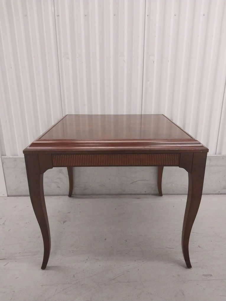 Elegant walnut table by Ethan Allen. Inlaid top. Very nice condition. 27" × 27" × 24" tall. I can deliver locally.