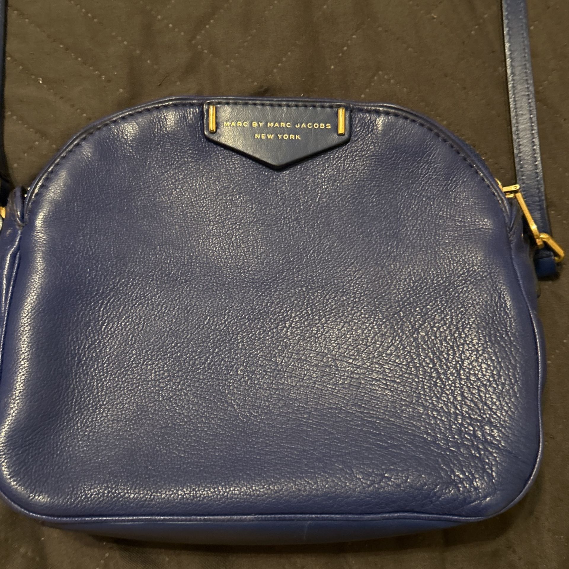Raw blue cross spotting double zipper three part compartment two zipper compartments very cute ready to ship